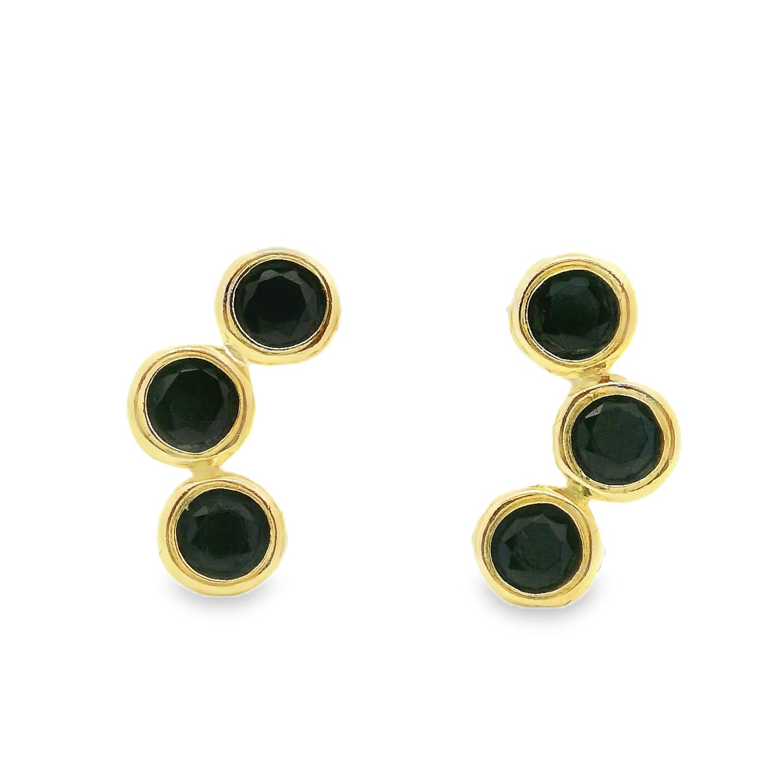 Diese eleganten Ohrringe bestehen aus drei atemberaubenden schwarzen Zirkonia-Steinen, die in einen schmalen vergoldeten Rahmen eingefasst sind. Diese Ohrringe sind perfekt, um jedem Outfit einen Hauch von Raffinesse zu verleihen, und sie wurden so entworfen, dass sie sich durch ihr einzigartiges und modernes Design von der Masse abheben.