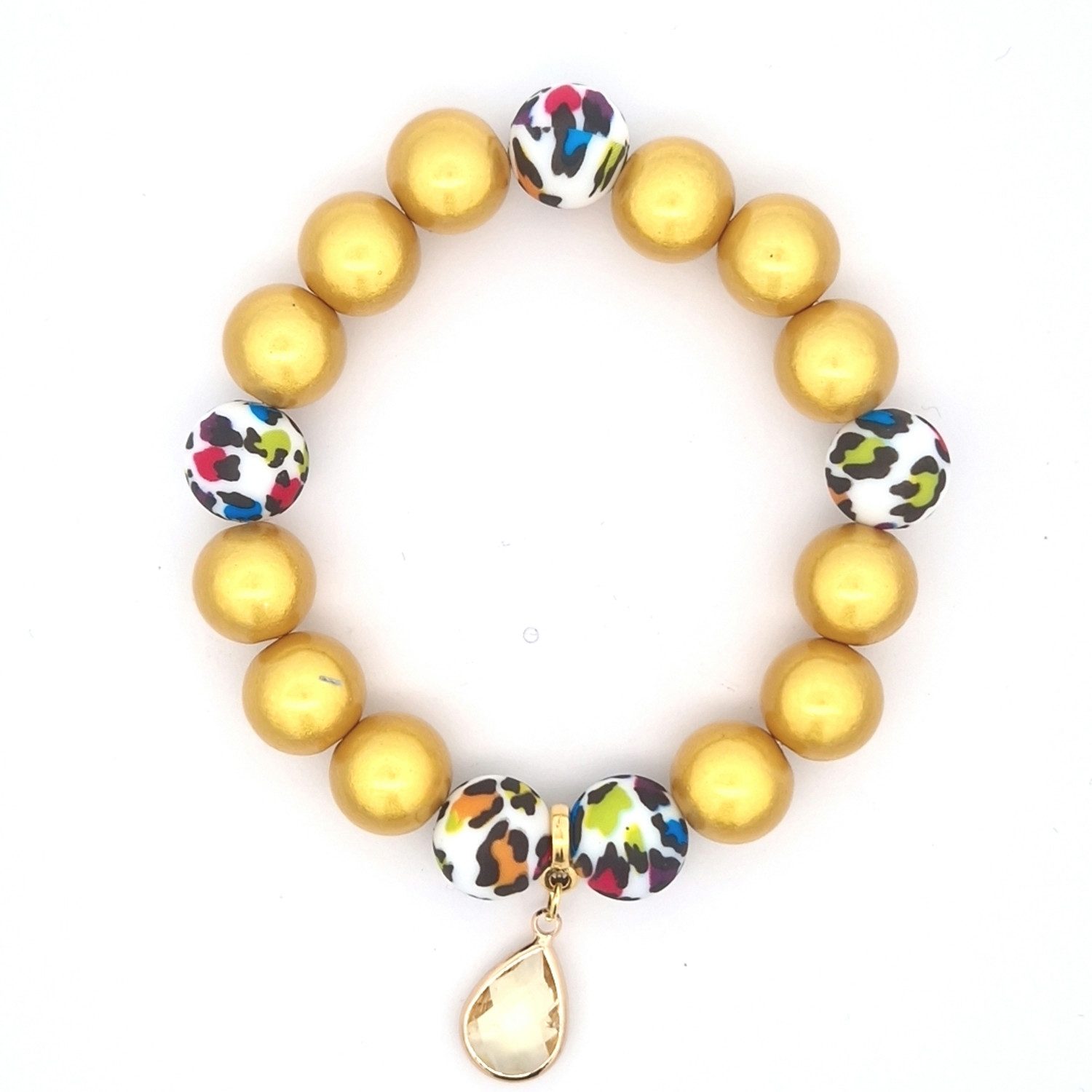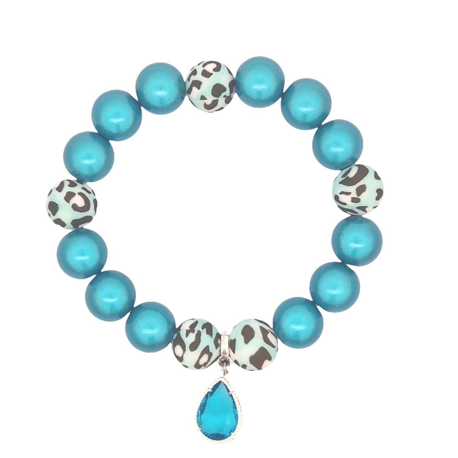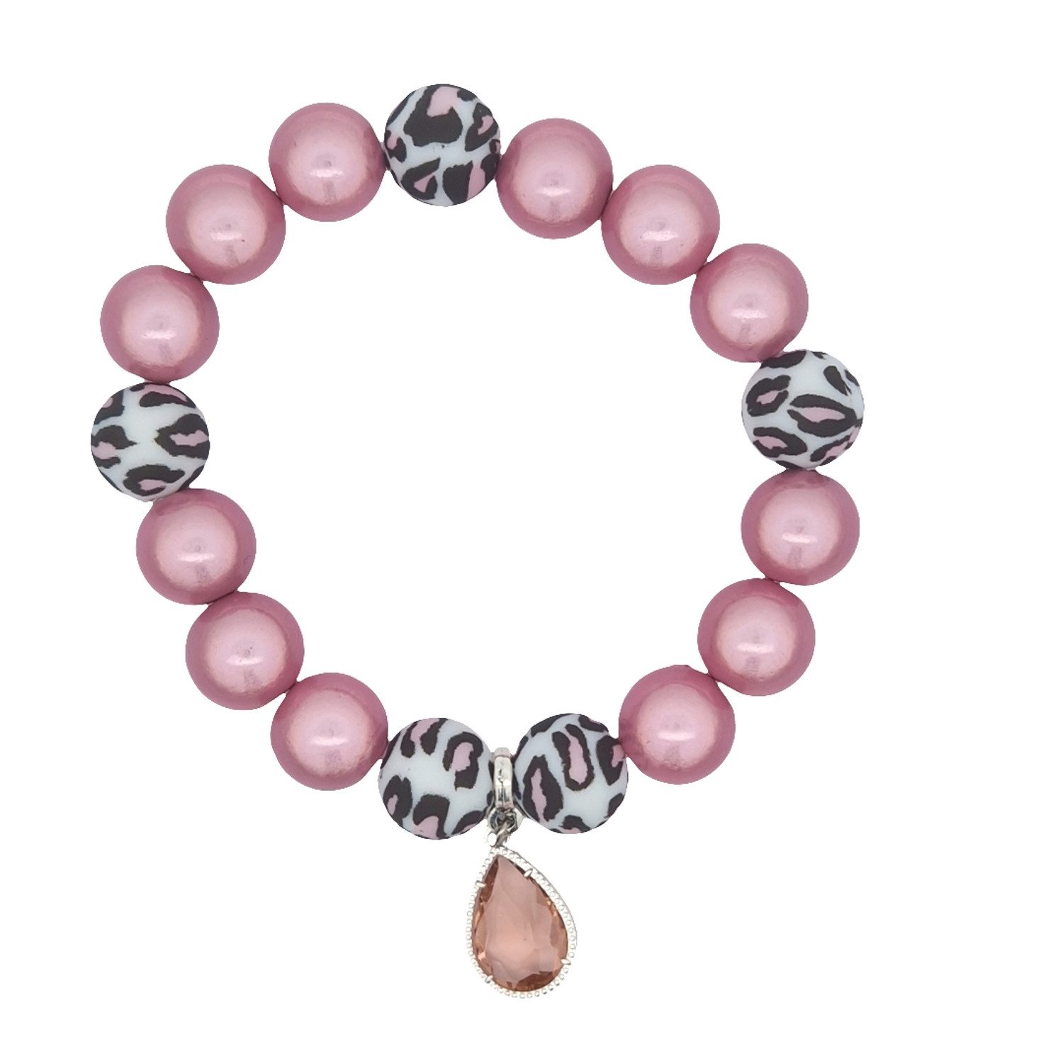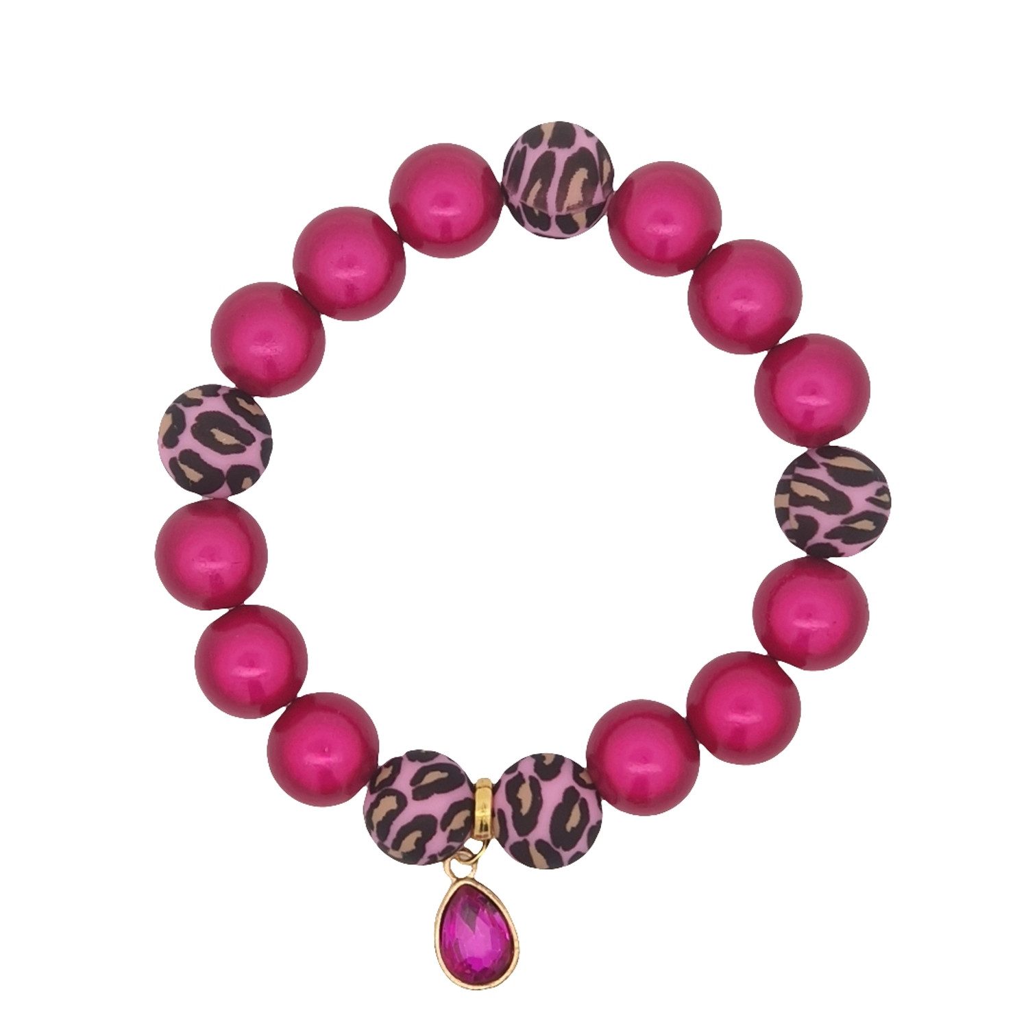 Dieses auffällige Armband kombiniert lebendige 3-D Perlen mit einem trendigen Leopardenmuster. Der funkelnde Anhänger in Tropfenform verleiht dem Schmuckstück einen Hauch von Eleganz und macht es zum perfekten Accessoire für jedes Outfit.