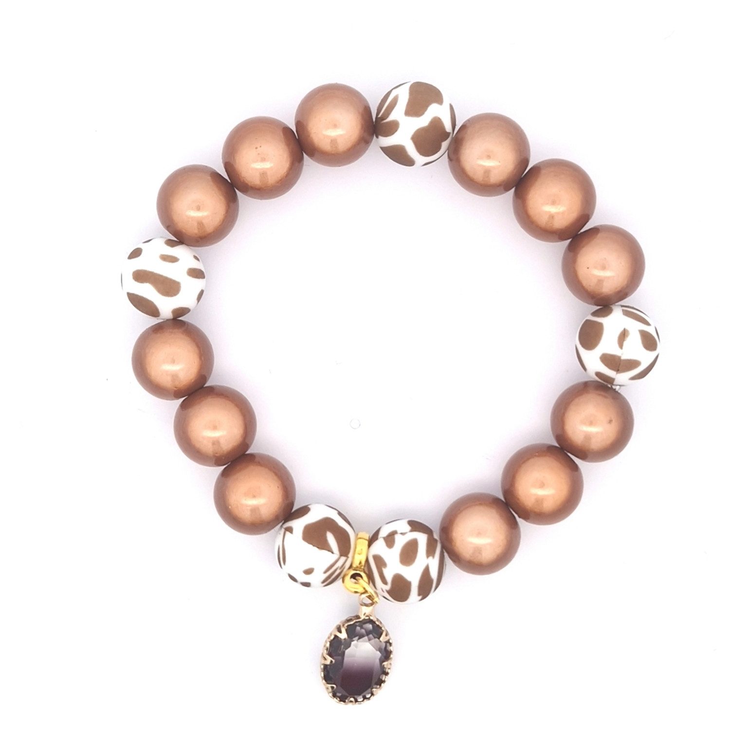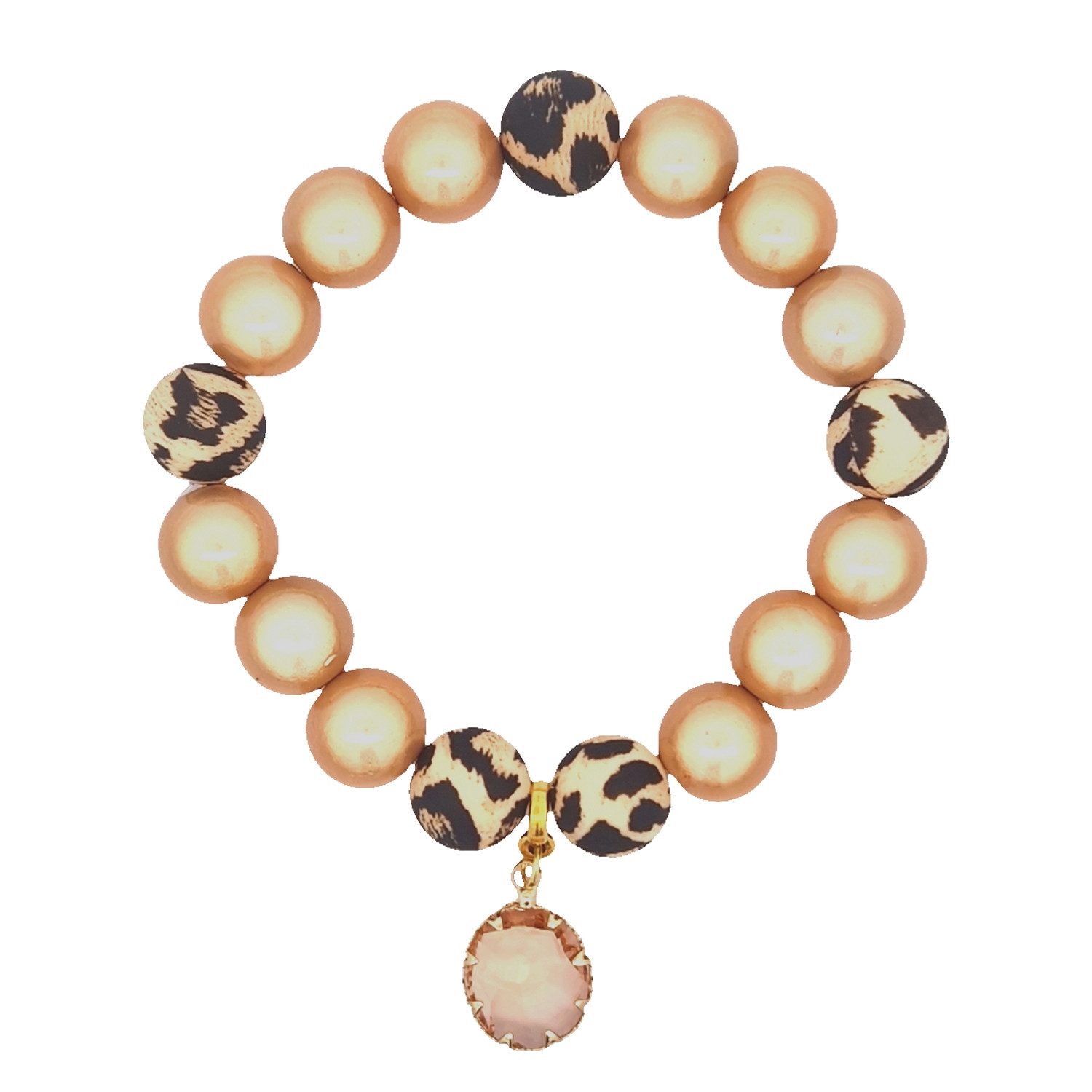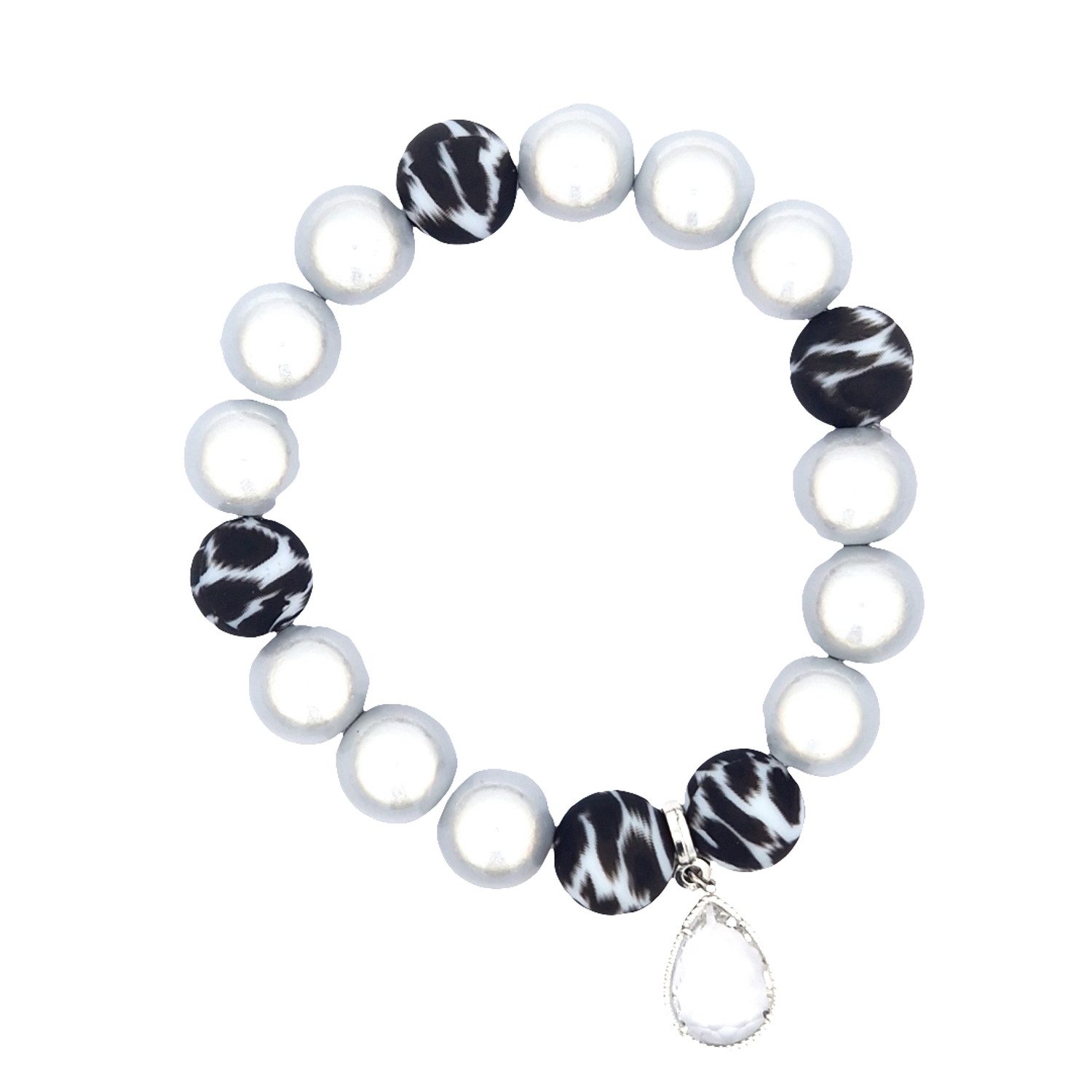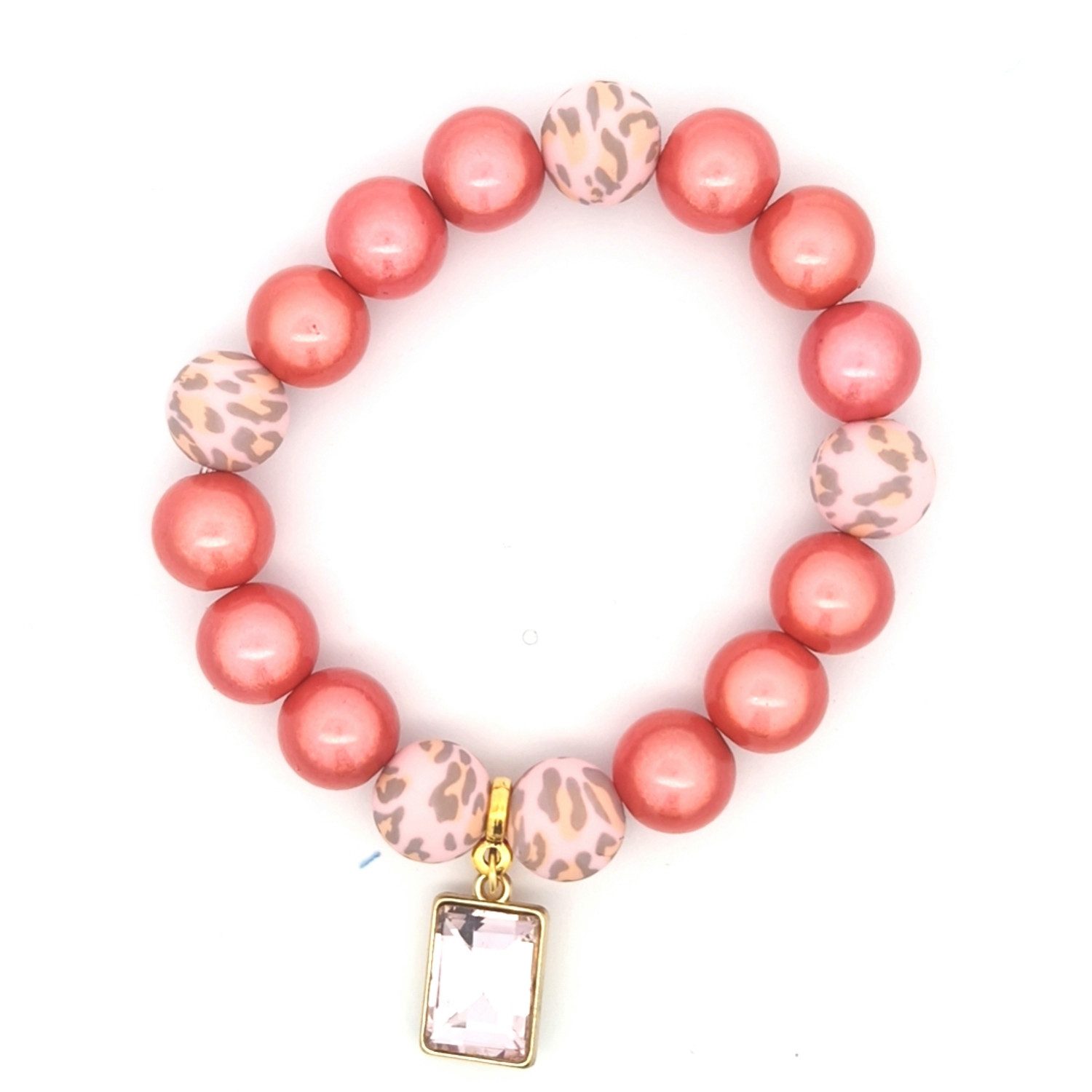 Dieses auffällige Armband kombiniert lebendige 3-D Perlen mit einem trendigen Leopardenmuster. Der funkelnde Anhänger in Tropfenform verleiht dem Schmuckstück einen Hauch von Eleganz und macht es zum perfekten Accessoire für jedes Outfit.