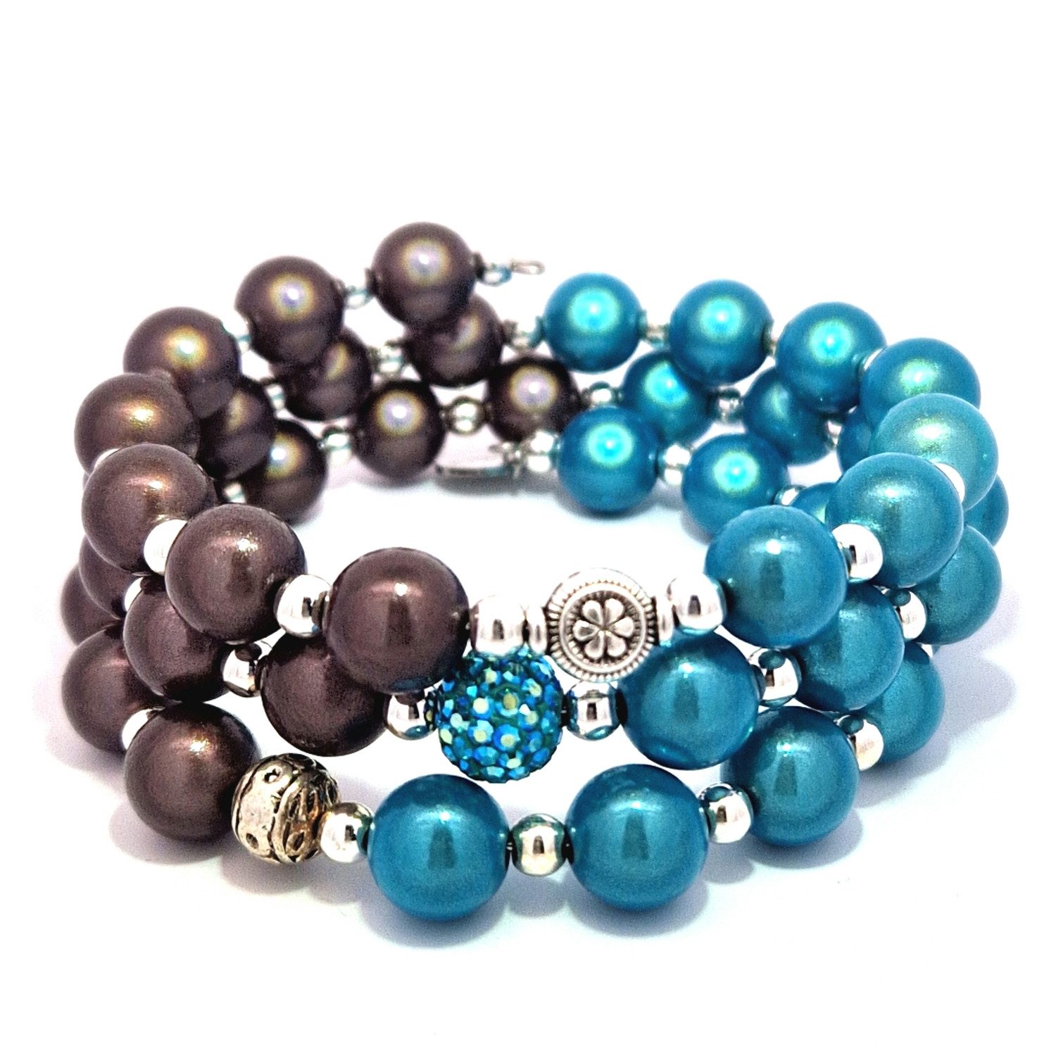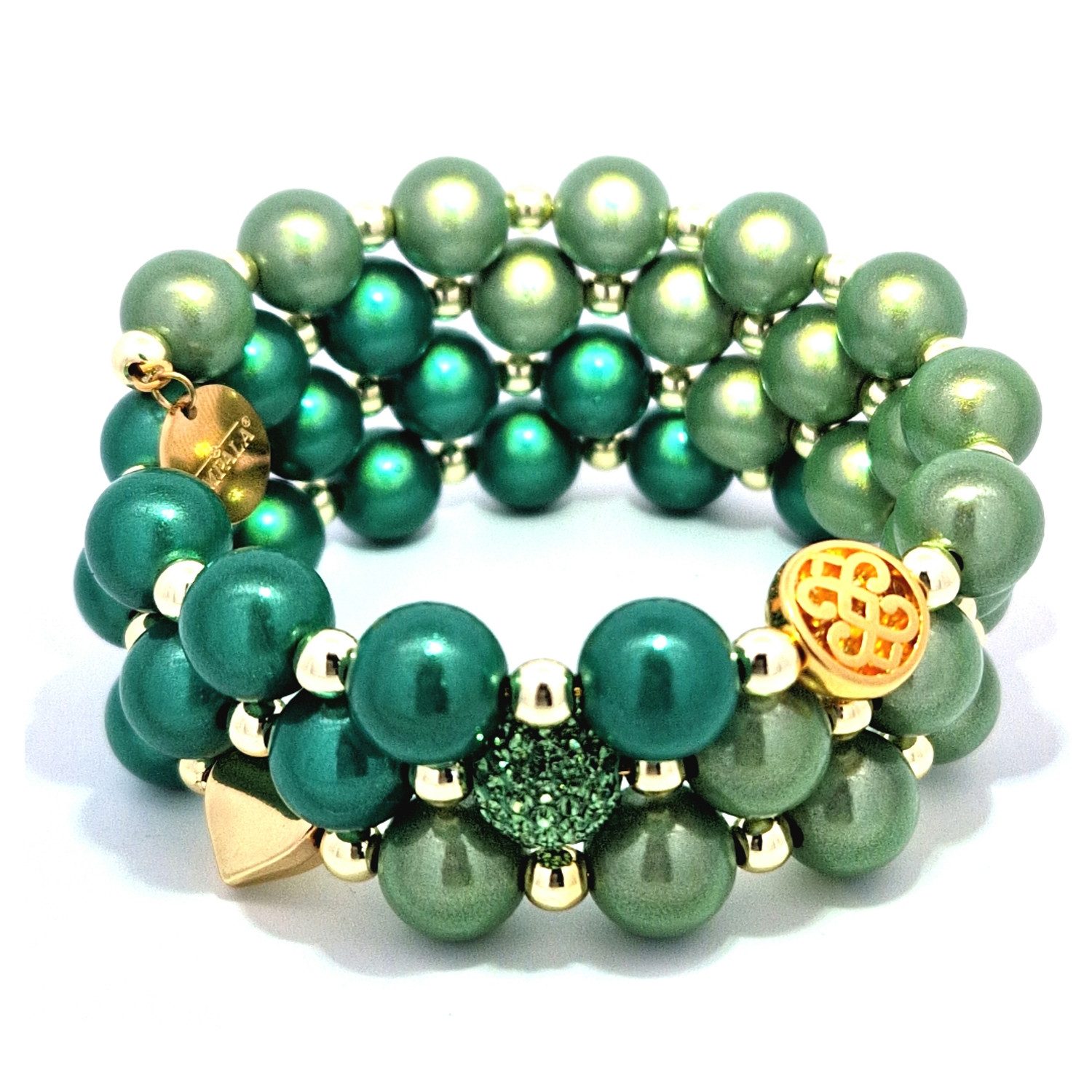 Dieses edle Spiralarmband besteht aus schimmernden 3 D Perlen in vielen verschiedenen Farben. Dank der flexiblen Spiralfassung passt sich das Armband jedem Handgelenk perfekt an – ganz ohne Verschluss. Ein besonderes Highlight ist die funkelnde Shamballa-Kugel , die dem Schmuckstück eine glamouröse Note verleiht. Vergoldete oder versilberte Zwischenelemente setzen zusätzliche Akzente und runden das elegante Design stilvoll ab.