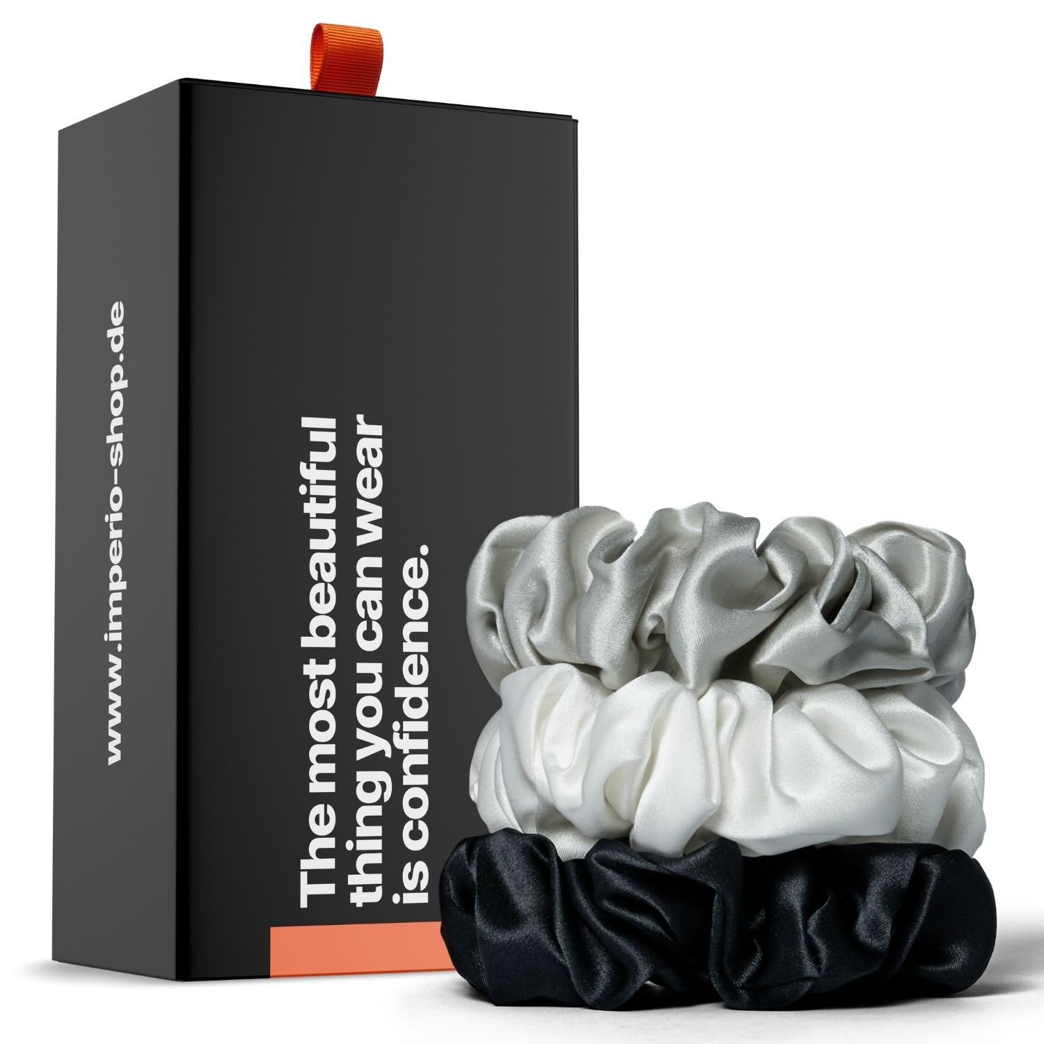 Die IMPERIO® Seiden Scrunchies sind mehr als nur ein Haaraccessoire – sie verkörpern höchste Qualität, stilvolles Aussehen und praktische Funktionalität! Die hochwertigen Scrunchies werden aus 100% Maulbeerseide in 22 Momme Qualität gefertigt, die für ihre hervorragende Qualität bekannt ist. Maulbeerseide zählt mit zu den edelsten Seidenarten weltweit. Ihre glatte und weiche Textur ist unvergleichlich angenehm zu tragen und besonders haarschonend. Anders als ein herkömmliches Zopfgummi, die das Haar strapazieren und brechen können, liegen die Seiden Scrunchies sanft im Haar und minimieren so die Reibung und das Risiko von Haarschäden und Spliss.