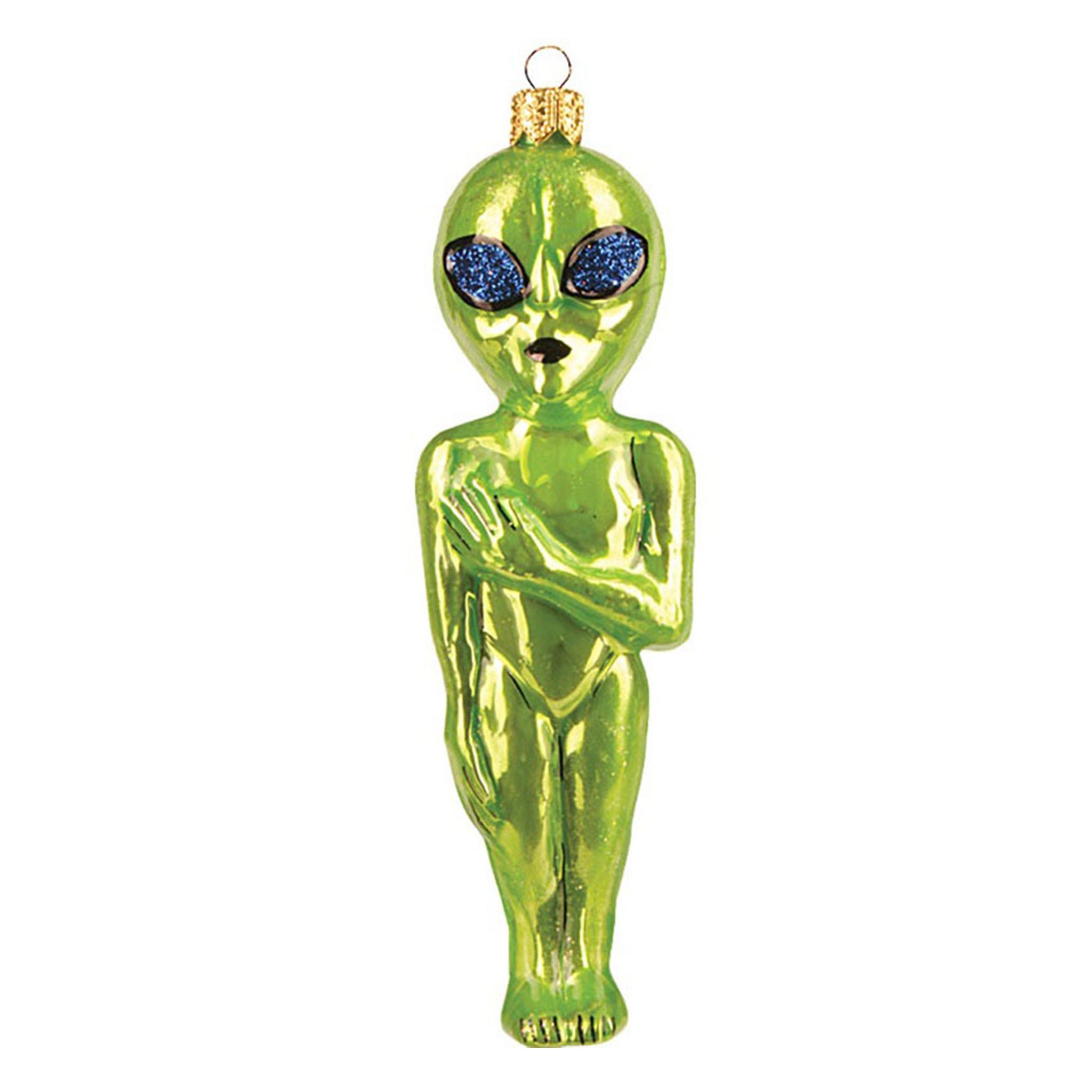 Weihnachtsbaumschmuck Figuren / Christbaumschmuck / Weihnachtsbaum Anhänger - Außerirdischer Material: Glas Größe: ca. 11 cm Packungsinhalt: 1 Christbaumfigur Farbe: maigrün - helles lindgrün - hellgrün - aus echtem Glas, in Europa mundgeblasen und handbemalt, mit Glitzer dekoriert Bereiten Sie Ihr Zuhause mit unserem Weihnachtsbaumanhänger auf die besinnlichste Zeit des Jahres vor. Mit schönem Baumschmuck verwandeln Sie Ihren Christbaum in ein wahres Schmuckstück. Egal, ob Sie einen traditionellen oder modernen Stil bevorzugen, unser Tannenbaum Anhänger passt perfekt und lässt sich hervorragend mit weiteren Christbaumkugeln, Weihnachtskugeln, Christbaumanhängern und Christbaumdeko kombinieren. Doch nicht nur als Tannenbaumschmuck eignet sich dieser Baumanhänger. Der zauberhafte Weihnachtsschmuck ist ein Highlight für jede Weihnachtsdeko und eignet sich auch als Dekoelement zum Verschönern der Festtagstafel. Die Weihnachtsbaum Deko ist auch eine wunderbare Geschenkidee für Freunde, Familie oder Kollegen zu Weihnachten. Überraschen Sie Ihren Liebsten mit diesem einzigartigen Tannenbaumanhänger als Weihnachtsgeschenk. Form & Figur: Alien, Außerirdische, Marsianer, Besucher aus dem All, UFO, Weltraum, Weltall, Kosmos, Science-Fiction / Sci-Fi, Space Die Farben können aufgrund von unterschiedlichen Monitor Einstellungen vom Foto leicht abweichen