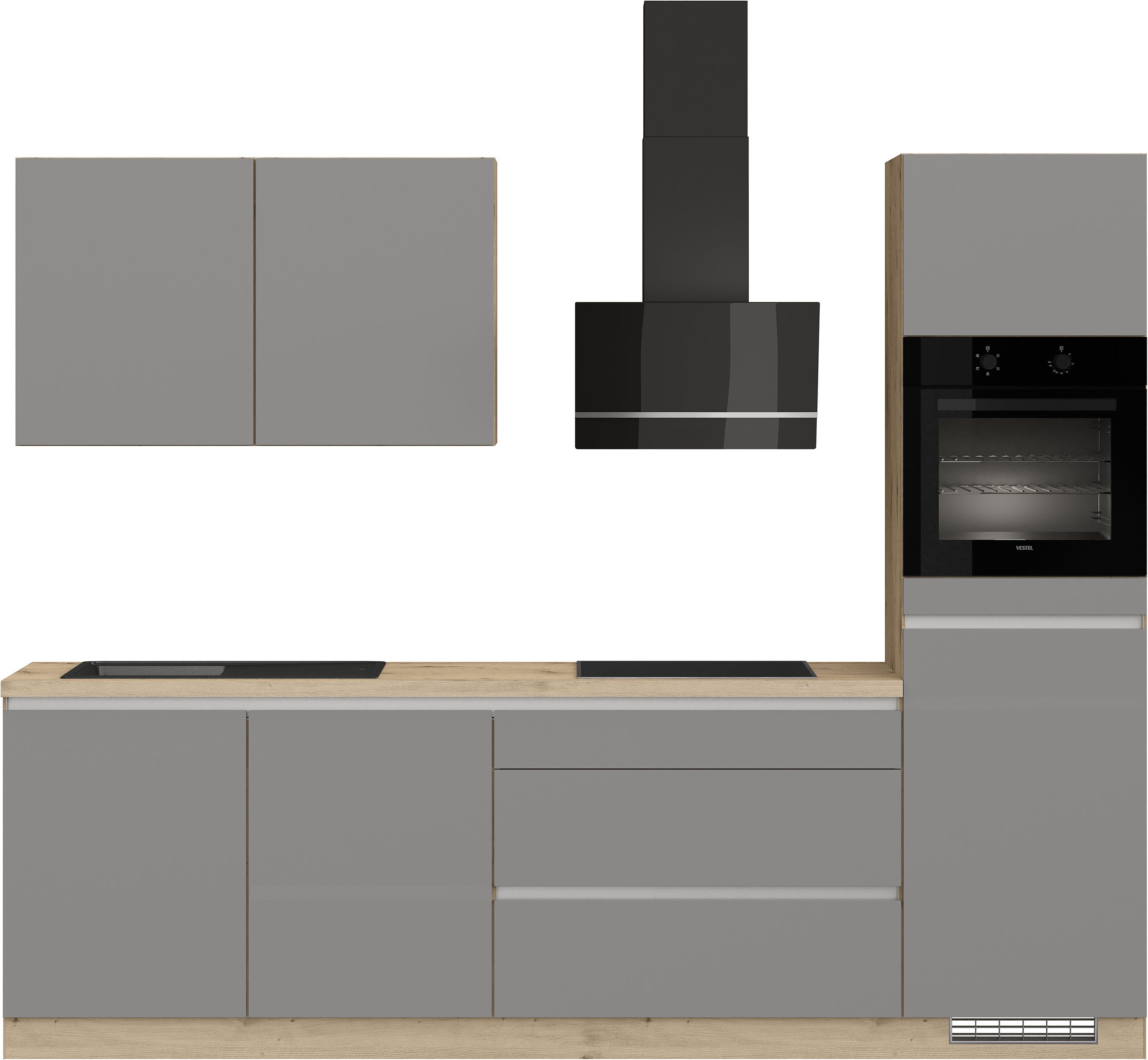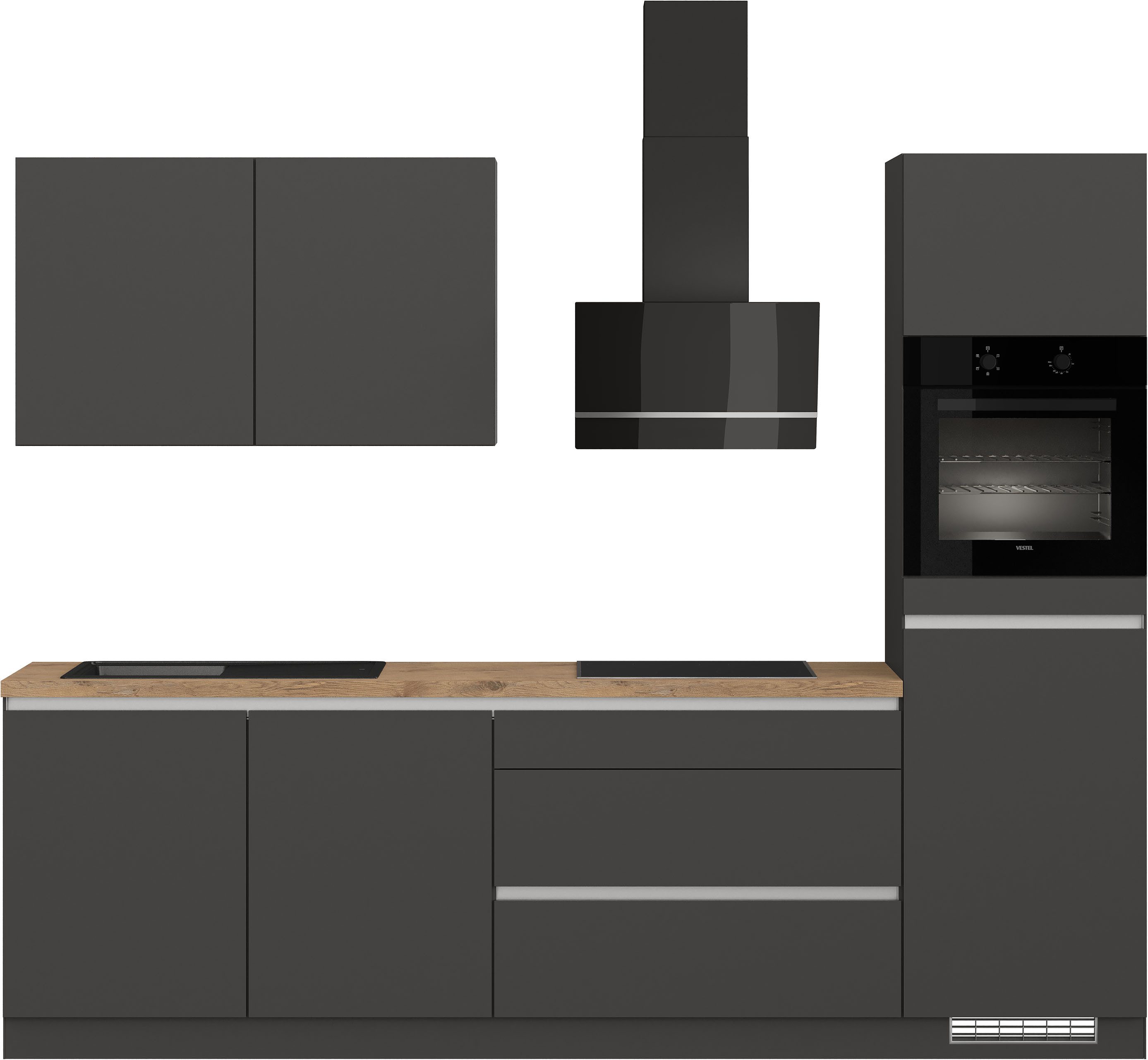 Set beinhaltet | 2x Hängeschrank 60cm Arbeitsplatte b: 220,2cm Frontplatte für vollintegrierten Geschirrspüler 60cm Seitenschrank für Backofen und Kühlgerät 60cm Sockel Spülen-Unterschrank 60cm Unterschrank für Kochmulde 100cm |