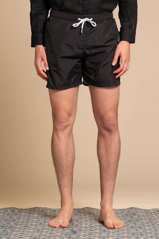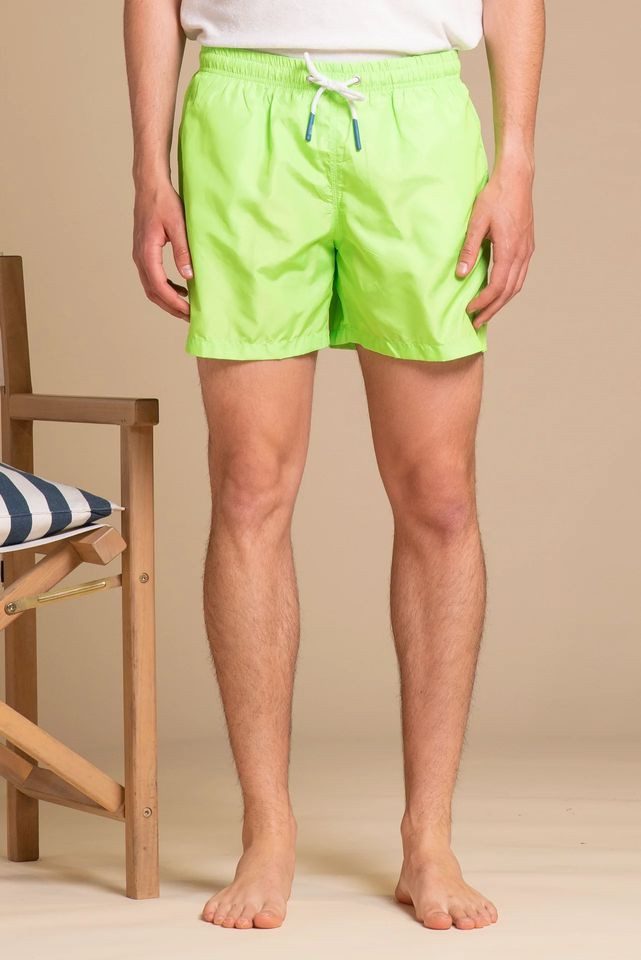 Badeshorts aus leichtem Polyester mit kontrastierenden Kordeln, Gesäßtasche mit Packfunktion und bequemer Passform. Ideal für Strand und Freizeit.