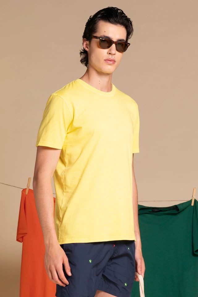 Mit klassischem Rundhalsausschnitt, geripptem Kragen und bequemer Passform ist dieses Modell ideal für entspannte Alltagslooks. Weich, leicht und atmungsaktiv – ein Must-have für jede Sommergarderobe.