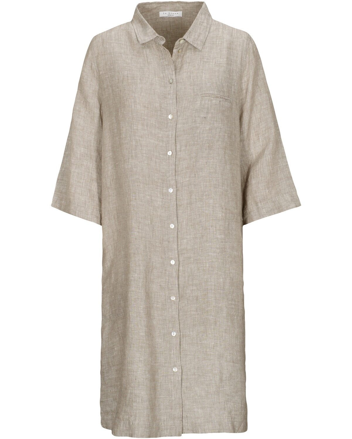 Das Leinen-Hemdkleid von In Linea ist ein vielseitiges und stilvolles Kleidungsstück für Damen, das perfekt für den Sommer geeignet ist. Hergestellt aus hochwertigem Leinen, bietet es einen leichten und atmungsaktiven Tragekomfort, der ideal für warme Tage ist. Mit seinem weiten 3/4-Arm und dem Hemdblusenkragen verleiht das Kleid einen Hauch von Eleganz und zugleich einen lässigen Look. Die durchgehende Knopfleiste vorne mittig verleiht dem Kleid eine moderne Note und ermöglicht eine individuelle Anpassung. Das Kleid hat eine Midi-Длина, die knapp unterhalb des Knies endet und eine schmeichelhafte Silhouette schafft. Eine Brust-Paspeltasche bietet nicht nur einen stilvollen Akzent, sondern auch praktischen Stauraum für kleine Gegenstände. Die Falte am Rücken sorgt für eine angenehme Bewegungsfreiheit und verleiht dem Kleid eine entspannte Passform. Ob bei einem entspannten Stadtbummel oder einem sommerlichen Abendessen, das Leinen-Kleid ist die perfekte Wahl für einen stilvollen und klassischen Look. Oberstoff: 100% Leinen