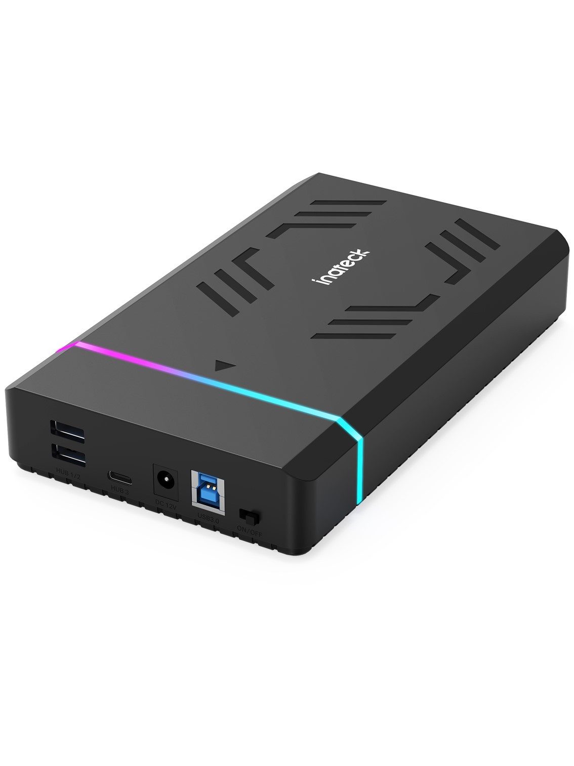 Inateck Festplatten-Gehäuse für 2.5''/3.5'' SATA HDD und SSD, RGB, mit 2*USB A- und 1*USB C-Anschlüsse
