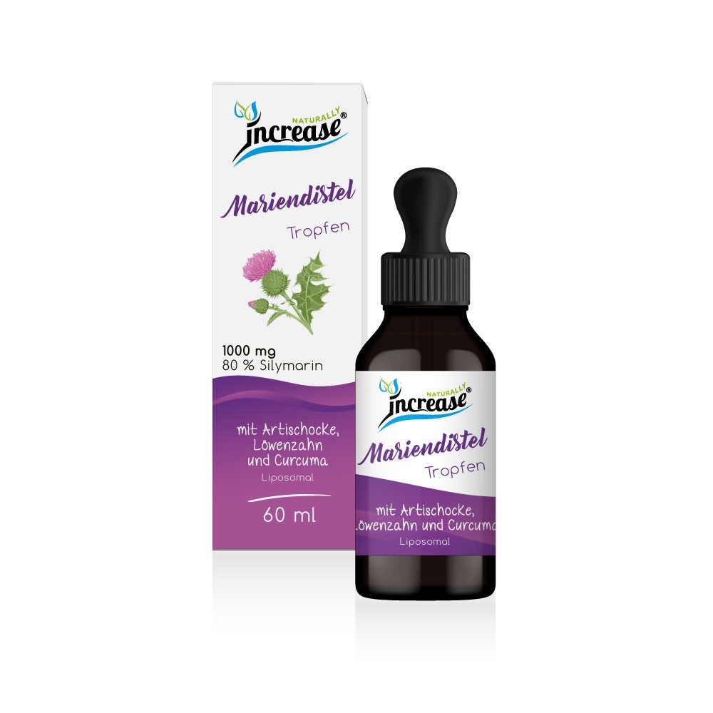 Mariendiestel Tropfen mit Artischocke, Löwenzahn und Curcuma ist ein Komplex aus pflanzlichen Rohstoffen mit einem hohen Gehalt an natürlichen Mariendistel, welche frei von chemischen Extraktionsprozessen gewonnen wird. Eine Tagesdosis enthält 1000 mg natürliches Mariendistel. Pro Flasche sind 30.000 mg Mariendistel enthalten. Verzehrempfehlung: Zweimal täglich 1 ml. Sie können die Tropfen mit anderen Flüssigkeiten (Getränken) mischen. Die angegebene empfohlene tägliche Verzehrmenge darf nicht überschritten werden. Zutaten: MCT Öl, Mariendistel Extrakt, Löwenzahn Extrakt, Artischocken Extrakt, Curcuma Extrakt, Lecithin. Inhaltsstoffe: 2 ml enthalten 1000 mg Mariendistel Extrakt* davon 800 mg Silymarin*, 100 mg Löwenzahn Extrakt*, 100 mg Artischocken Extrakt* davon 2,5 mg Cynarin*, 100 mg Curcuma Extrakt*, 10 mg Vitamin E (66,6%)**. (* keine Referenzmenge vorhanden / ** Prozent der Referenzmenge gemäß LMIV vorhanden). Hinweis: Nahrungsergänzungsmittel sollten nicht als Ersatz für eine ausgewogene, abwechslungsreiche Ernährung und gesunde Lebensweise verwendet werden. Außerhalb der Reichweite von Kindern lagern. Bitte kühl und lichtgeschützt lagern. 60 ml entsprechen je nach Bedarf 30 - 60 Portionen. Nettofüllmenge: 60 ml.