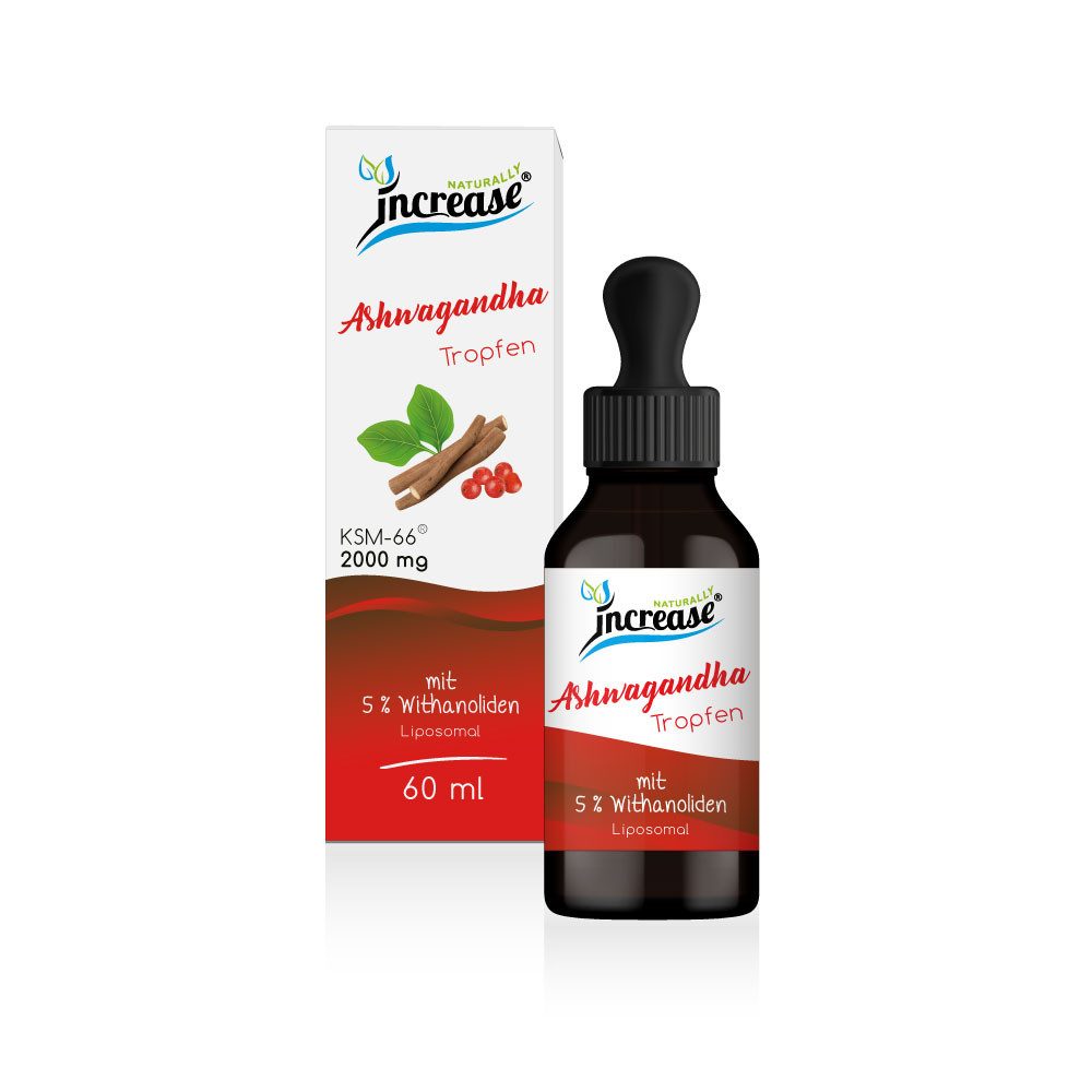Ashwagandha Tropfen ist ein Komplex pflanzlicher Rohstoffe mit einem hohen Gehalt an natürlichem Ashwagandha, welches frei von chemischen Extraktionsprozessen gewonnen wird. Eine Tagesdosis enthält 2000 mg natürliches Ashwagandha. Pro Flasche sind 60.000 mg Ashwagandha enthalten. Verzehrempfehlung: 2x täglich 1 ml einnehmen. Sie können Tropfen mit anderen Flüssigkeiten (Getränken) mischen. Die angegebene empfohlene tägliche Verzehrmenge darf nicht überschritten werden. Zutaten: MCT Öl, Ashwagandha Wurzelextrakt (KSM-66), Lecithin. Inhaltsstoffe: 2 ml enthalten 2000 mg Ashwagandha Wurzelextrakt* davon 100 mg Withanolide*, (* keine Referenzmenge vorhanden / ** Prozent der Referenzmenge gemäß LMIV vorhanden). Hinweis: Nahrungsergänzungsmittel sollten nicht als Ersatz für eine ausgewogene, abwechslungsreiche Ernährung und gesunde Lebensweise verwendet werden. Außerhalb der Reichweite von Kindern lagern. Bitte kühl und lichtgeschützt lagern. 60 ml entsprechen je nach Bedarf 30 - 60 Portionen. Nettofüllmenge: 60 ml.