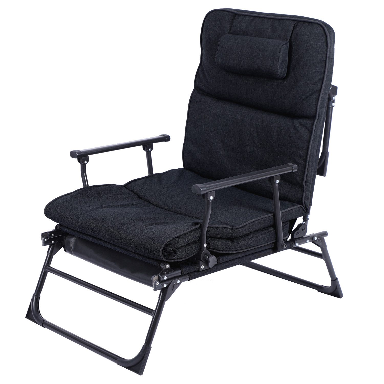 2 in 1 Gartenliege Ruheliege Sanitätsliege Liegebett Gästebett Relaxsessel Ruhesessel schwarz mit Polster inkl. Kopfkissen