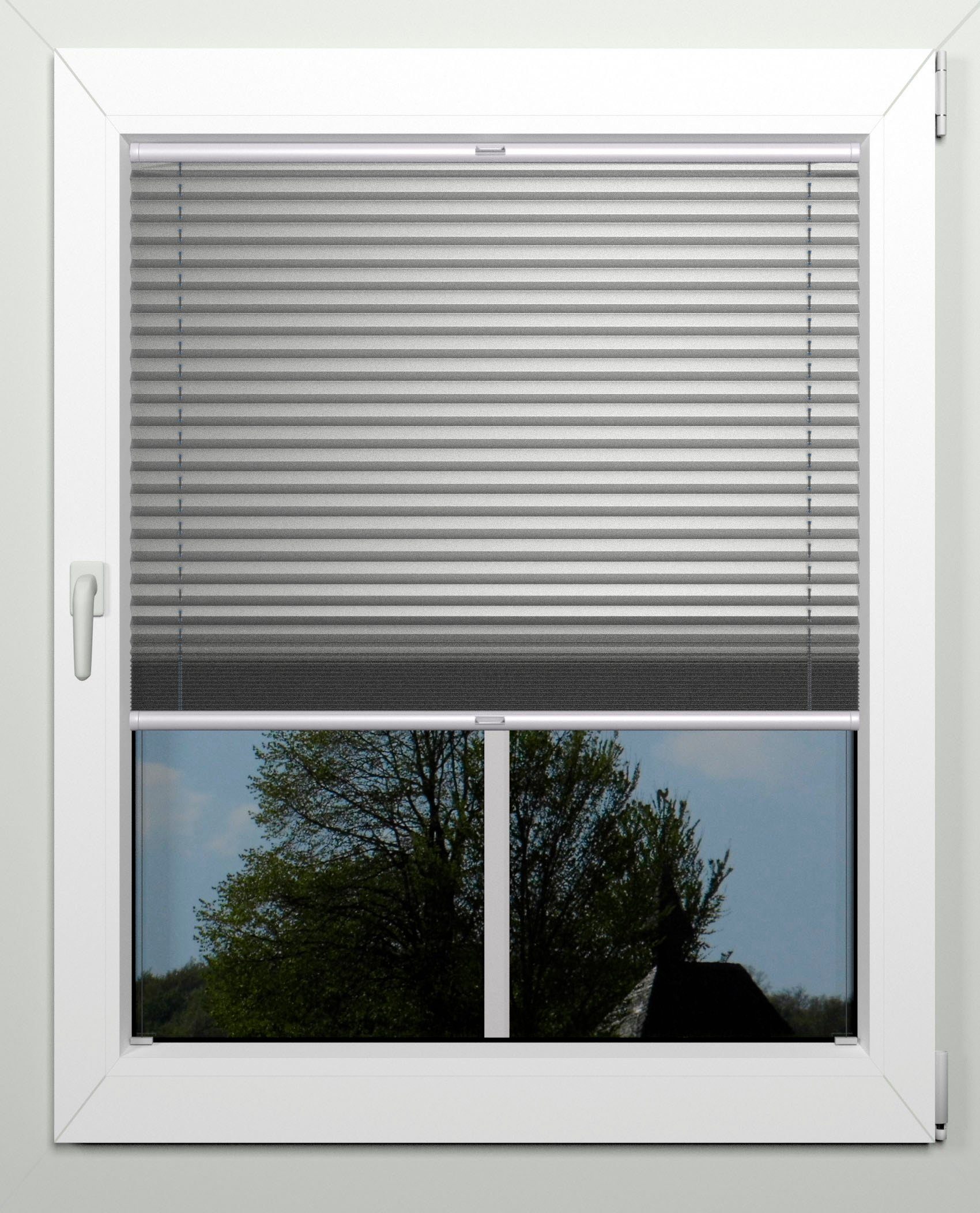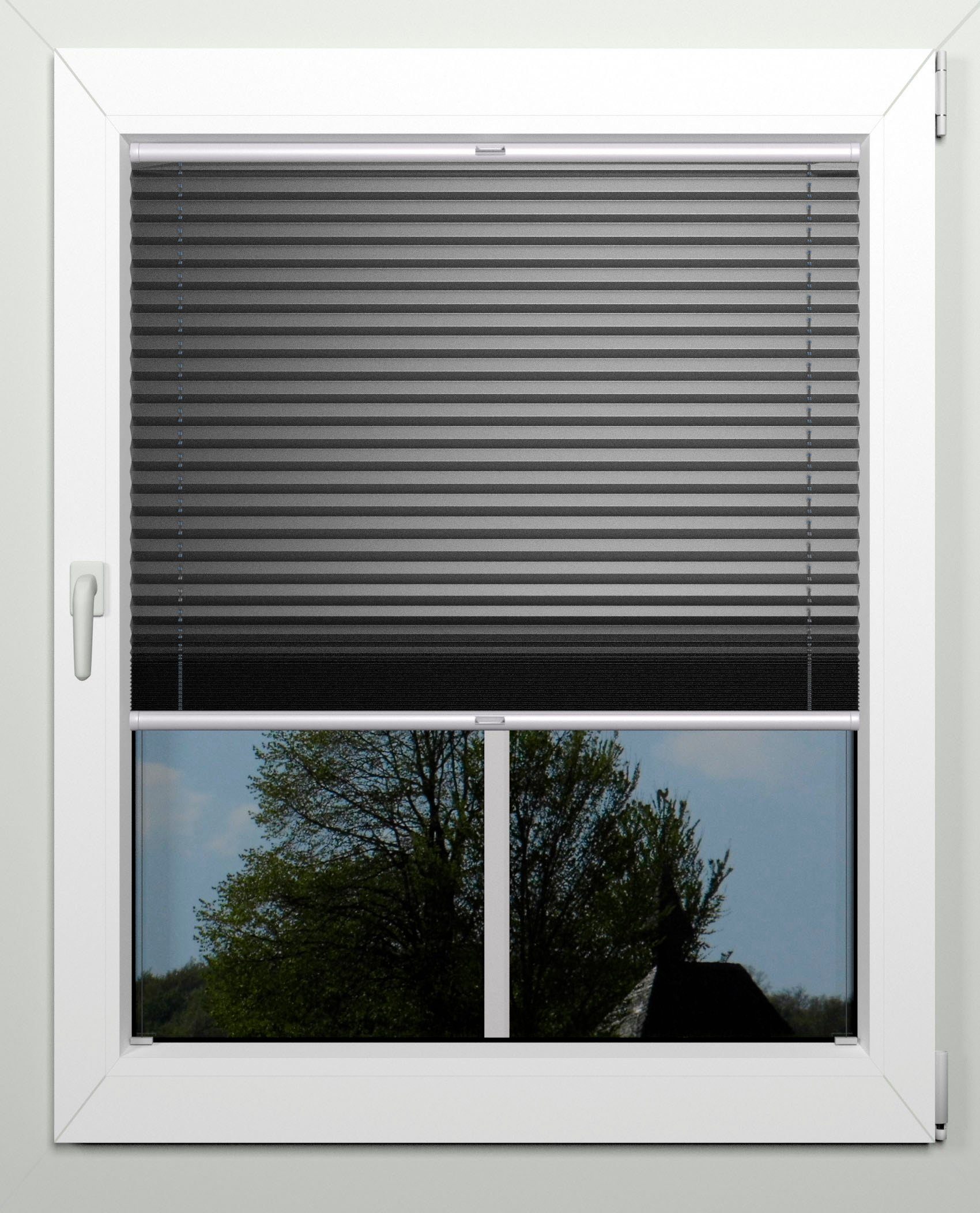 Hinweis Transparenz | Verdunkelung: lichtundurchlässig, auch bei starkem Sonnenschein (bis auf einen kleinen Spalt jeweils rechts und links am Rand zwischen Wand/Fenster zum Plissee). |