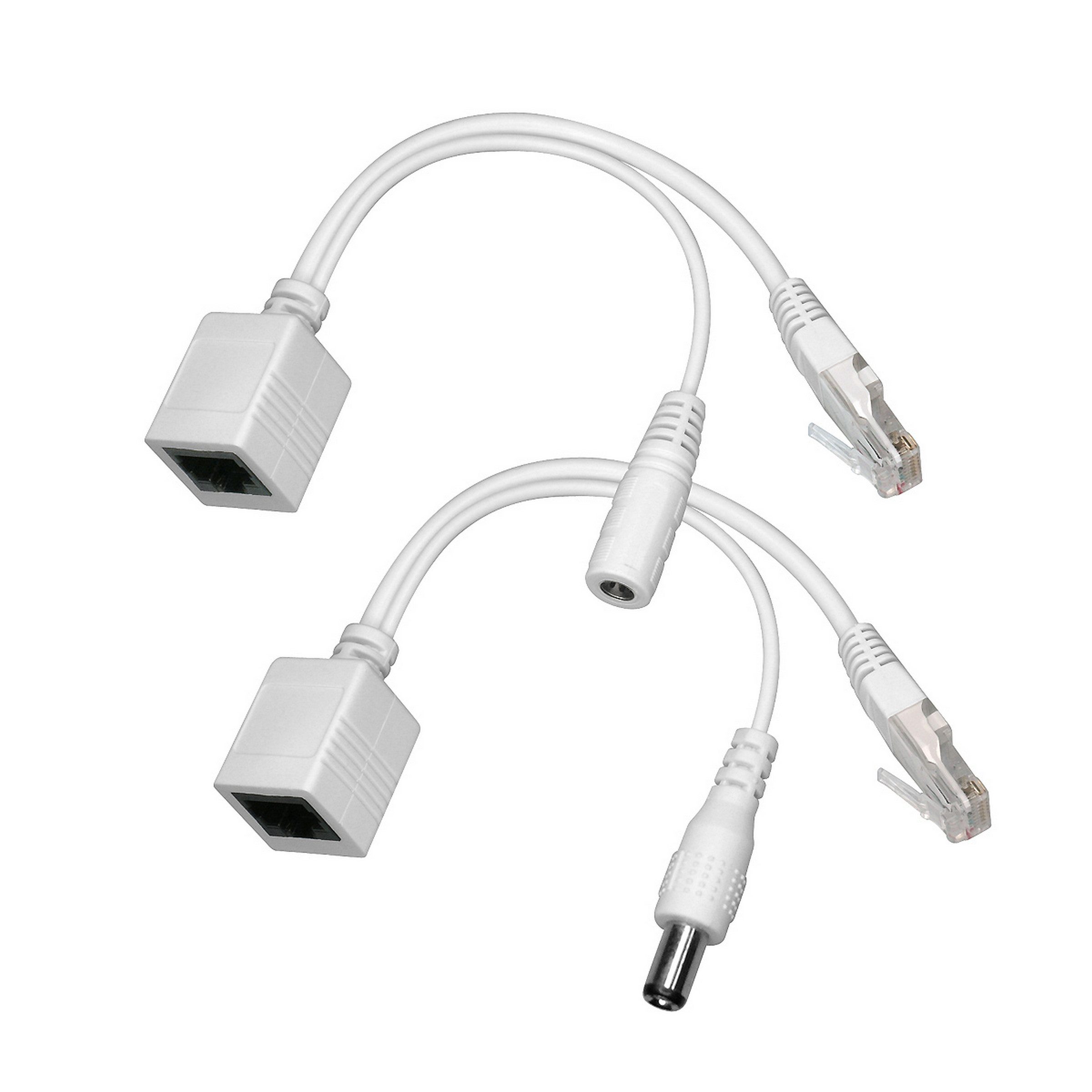 Stromeinspeisungs-Adapterset für Netzwerkkabel. Ermöglicht das Führen von 12V DC über CAT5/6/7 Kabel für z.B. IP-Kameras mit 12V Versorgungsbuchse. Passend für Kameras WR100B / WR100D, um das Netzgerät nach innen zu verlegen. Bestehend aus Eingangskabelpeitsche mit RJ45 Stecker, DC-Buchse und RJ45 Buchse sowie Ausgangskabelpeitsche mit RJ45 Stecker, DC-Stecker und RJ45 Buchse. Muss immer paarweise verwendet werden. Stromübertragung bis max. 20m je nach Kabelqualität und Stromverbrauch des Endgerätes. DC-Steckerdurchmesser 5,5 / 2,1mm. Kabelverbindung 10/100 Mbit/s. Pinbelegung 1/2/3/6 für Datenübertragung, 4/5/7/8 für die Stromversorgung. Длина der Kabelpeitsche jeweils ca. 18cm.