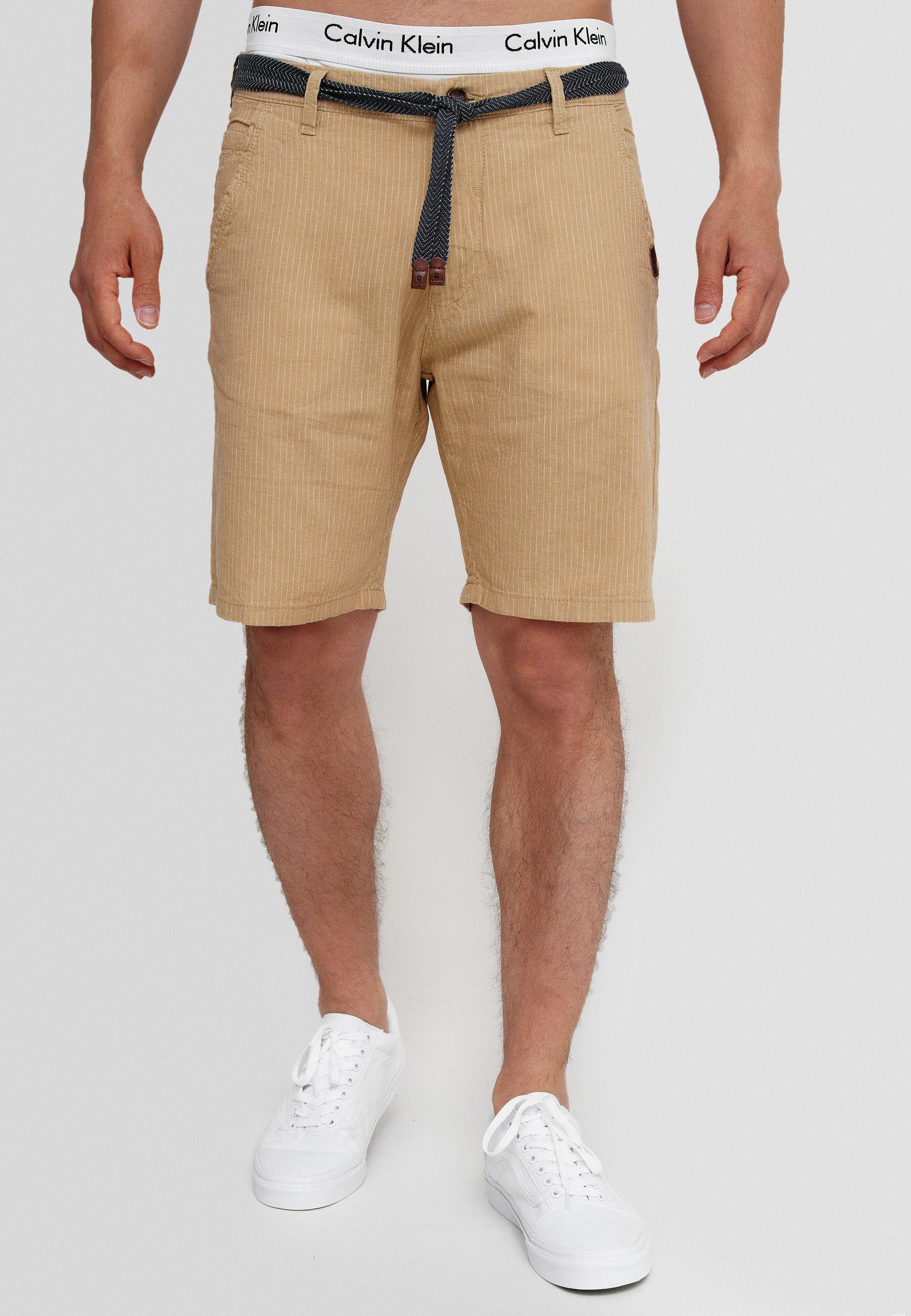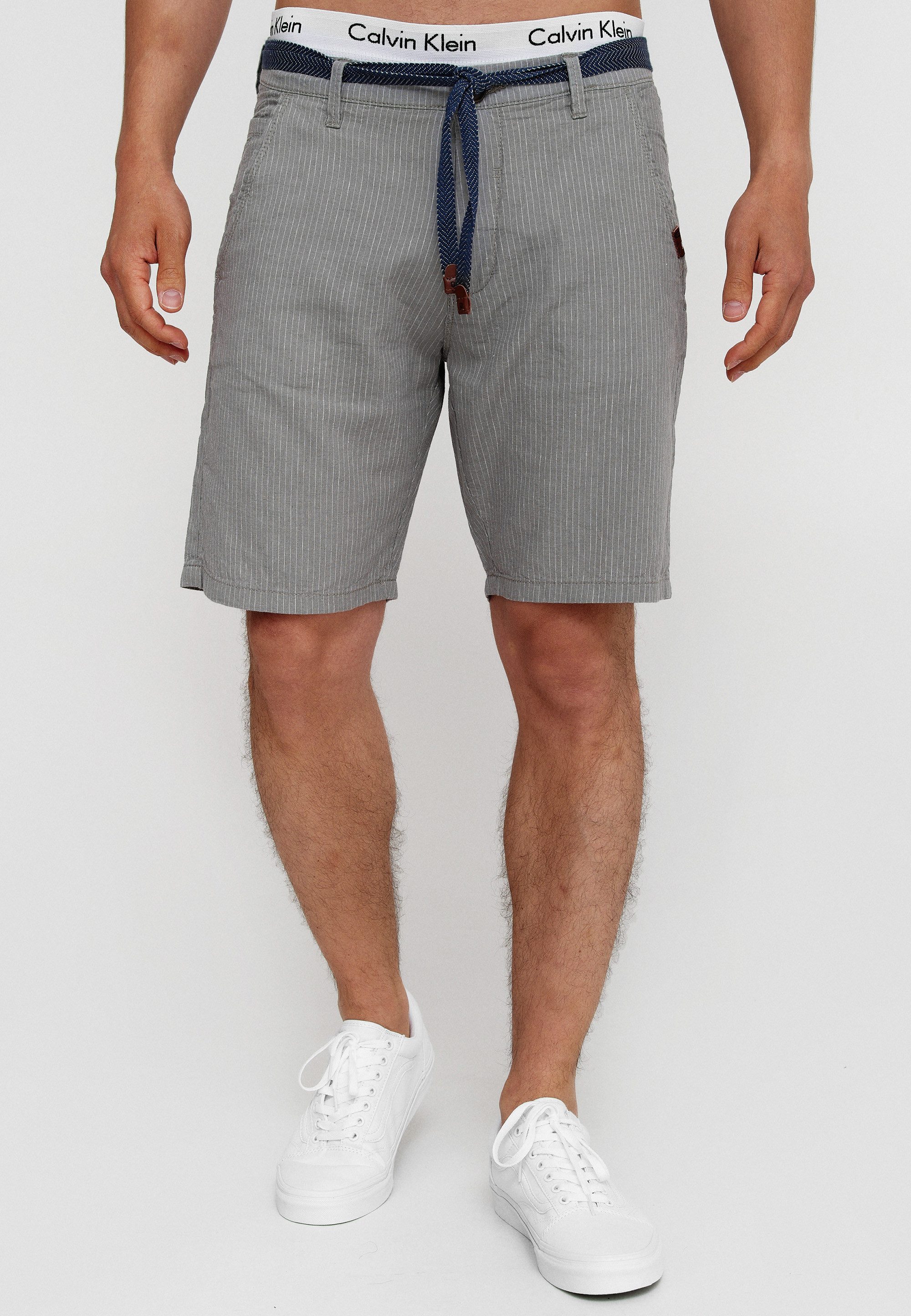 Diese stilvollen Herrenshorts vereinen Komfort und Eleganz in einem lässigen Design. Das feine, durchgehende Streifenmuster verleiht ihnen eine klassische und zugleich moderne Optik. Sie sind mit einem Knopf- und Reißverschluss ausgestattet und verfügen über Gürtelschlaufen für zusätzliche Styling-Möglichkeiten. Ein passender, geflochtener Stoffgürtel mit dekorativen Lederdetails sorgt für eine stilvolle Ergänzung. Die Shorts bieten zwei seitliche Eingrifftaschen sowie eine kleine Logo-Applikation an der Seite. Das leichte und atmungsaktive Material gewährleistet ein angenehmes Tragegefühl und macht sie ideal für Freizeit- und Sommeroutfits.