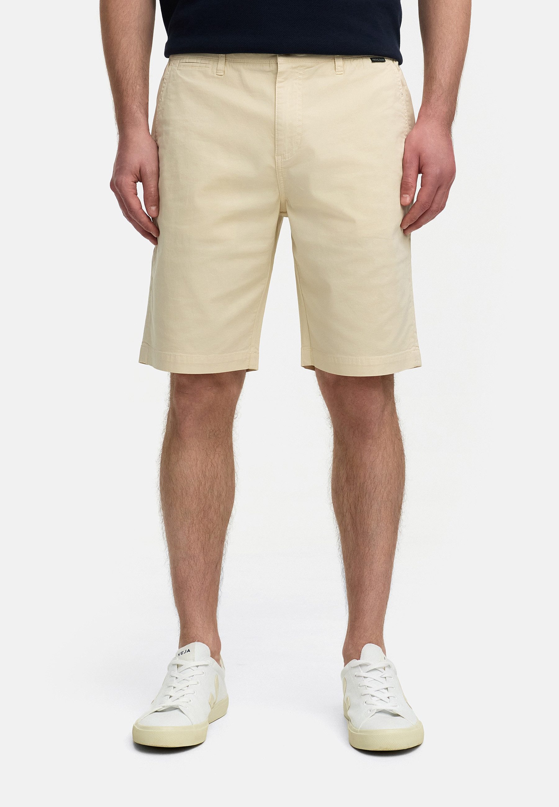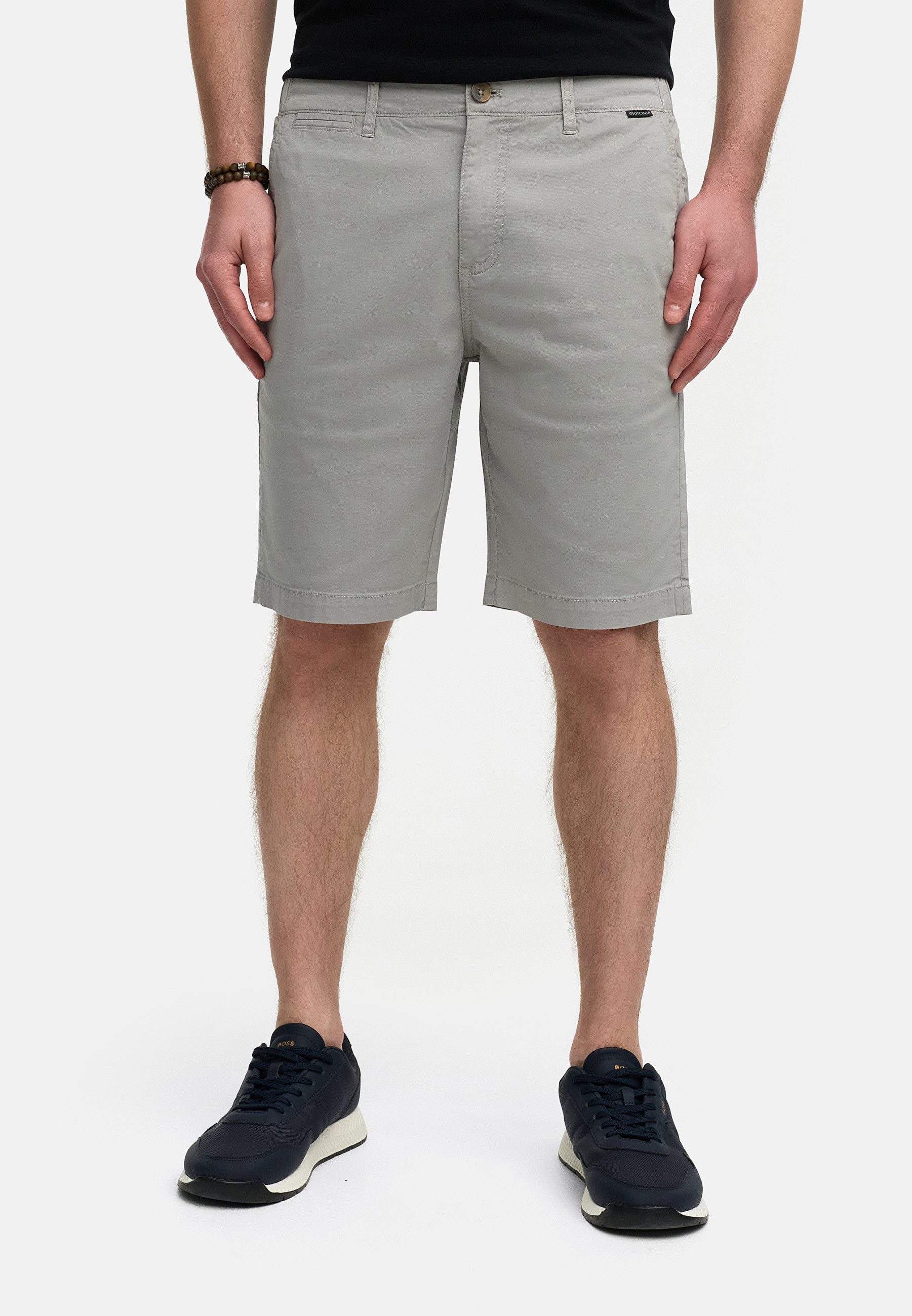 Diese stilvollen Herren-Shorts bieten eine perfekte Kombination aus Komfort und Funktionalität. Gefertigt aus hochwertigem Materialmix mit einem Anteil an BCI-Baumwolle, Supima-Baumwolle und Spandex, sorgen sie für ein angenehmes Tragegefühl und eine optimale Bewegungsfreiheit. Der klassische Schnitt mit Knopf- und Reißverschluss sowie Gürtelschlaufen verleiht ihnen eine elegante, aber dennoch entspannte Optik. Zwei seitliche Eingrifftaschen und zwei Gesäßtaschen mit Knopfverschluss bieten praktischen Stauraum. Dezente Label-Details, darunter eine Flag-Label-Applikation und ein markantes Rückseitenlabel, runden das Design stilvoll ab. Ideal für Freizeit, Alltag und sommerliche Anlässe.