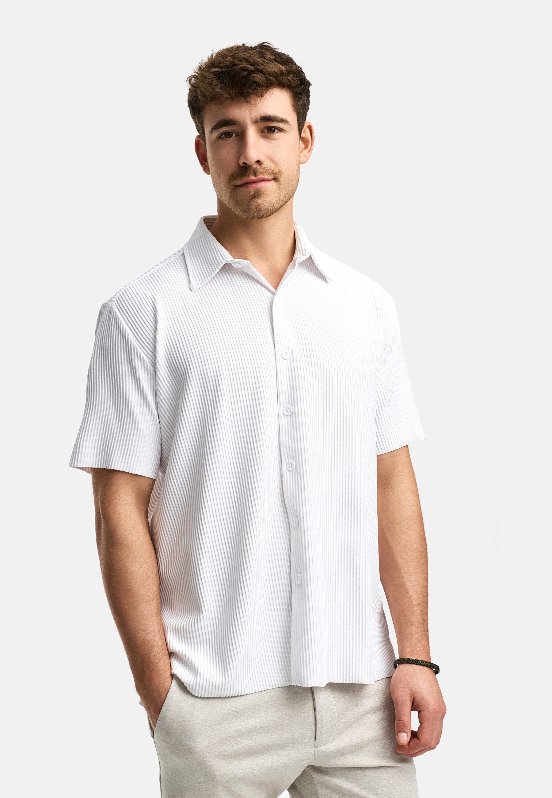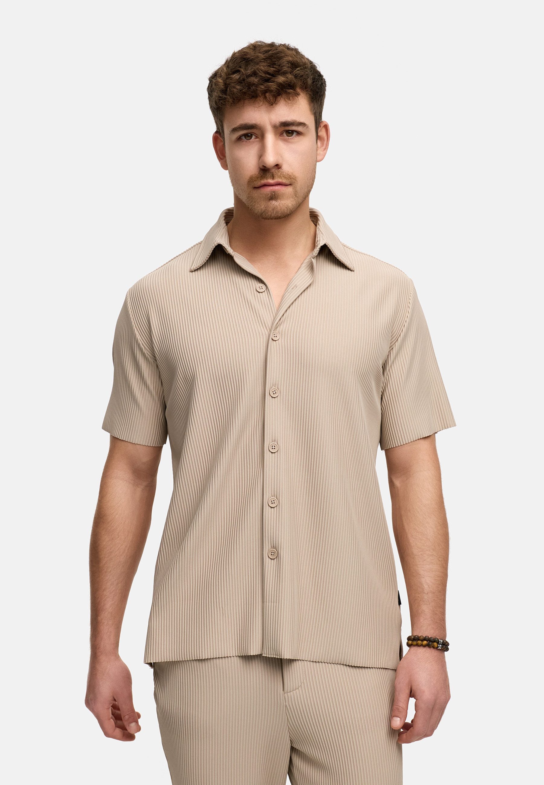 Der fein gerippte Stoff mit vertikaler Struktur sorgt für eine elegante Optik und unterstreicht den modernen Stil des Hemdes.