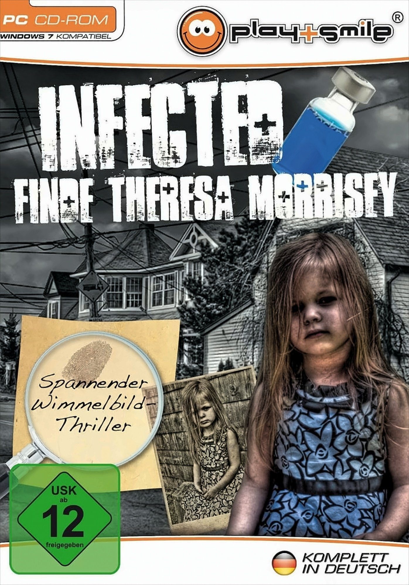 Spielbeschreibung | Oxford muss evakuiert werden! Der Grund ist ein gefährliches Virus, das sich über die ganze Stadt verteilt und die Menschen in Angst und Schrecken versetzt. Nur ein Mensch scheint gegen die Infektion immun zu sein: Theresa Morrisey. Mache dich auf die Suche nach ihr und finde mit ihrer Hilfe heraus, wie du das Virus besiegen kannst, das sich bald auf die gesamte Welt auszuweiten droht! Doch um Theresa zu finden, musst du dich zurück in die evakuierte Stadt Oxford begeben, die offenbar nicht völlig verlassen ist...- Mehr als 220 unterschiedliche Szenerien- Ein komplett neuer Wimmelbild-Modus- In HD und Breitbild für noch mehr Details!- Real existierende Orte- Verschiedene Schwierigkeitsgrade- Bonuskapitel: Dringe noch tiefer ein in die Welt von Infected!- Inklusive Making-of-Video, Wallpapers und Concept Art!Das Schicksal der Welt liegt in deinen Händen!Sprache/Untertitel: DeutschHandbuch: Deutsch Medium: CD-ROMAnzahl: 1Pentium 1 GHz, 512 MB RAM, 200 MB Festplattenspeicher, Win XP/Vista/7 |
