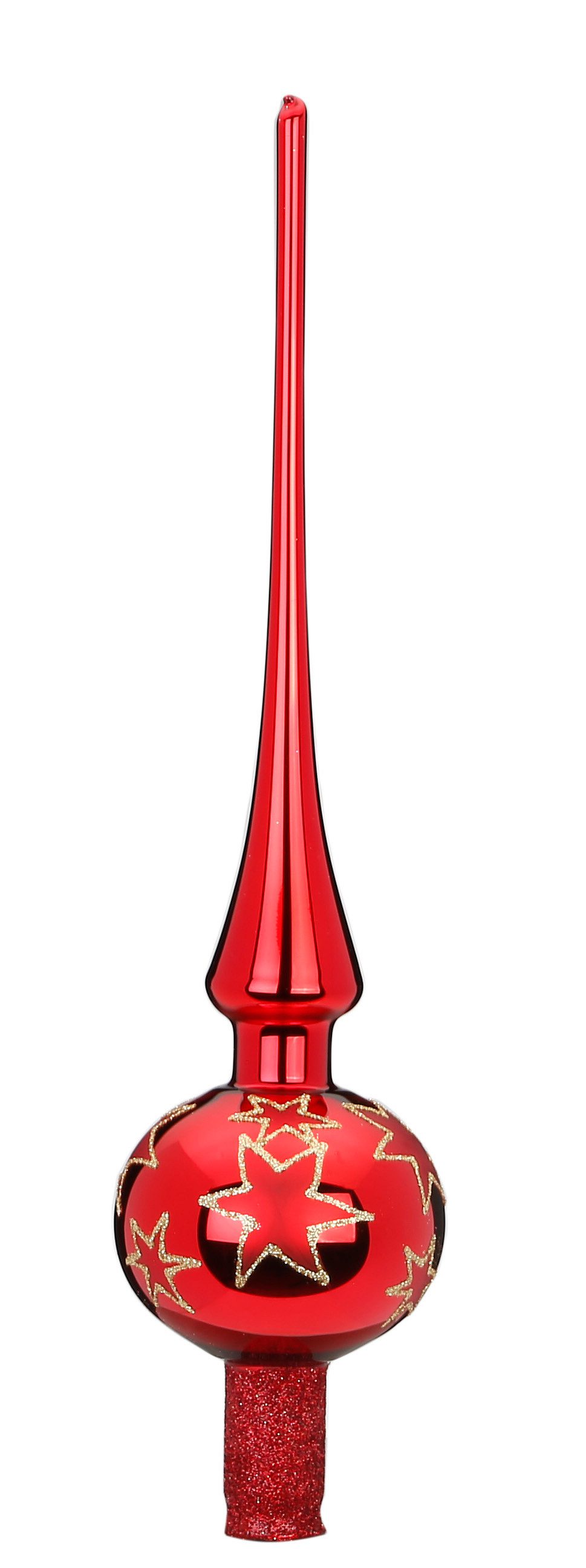 PRODUKT: Weihnachtsspitze "Weihnachtssterne" / HÖHE: ca. 30 cm / MATERIAL: Glas / INHALT: 1 Spitze / FARBTON: rot - weihnachtsrot - gold