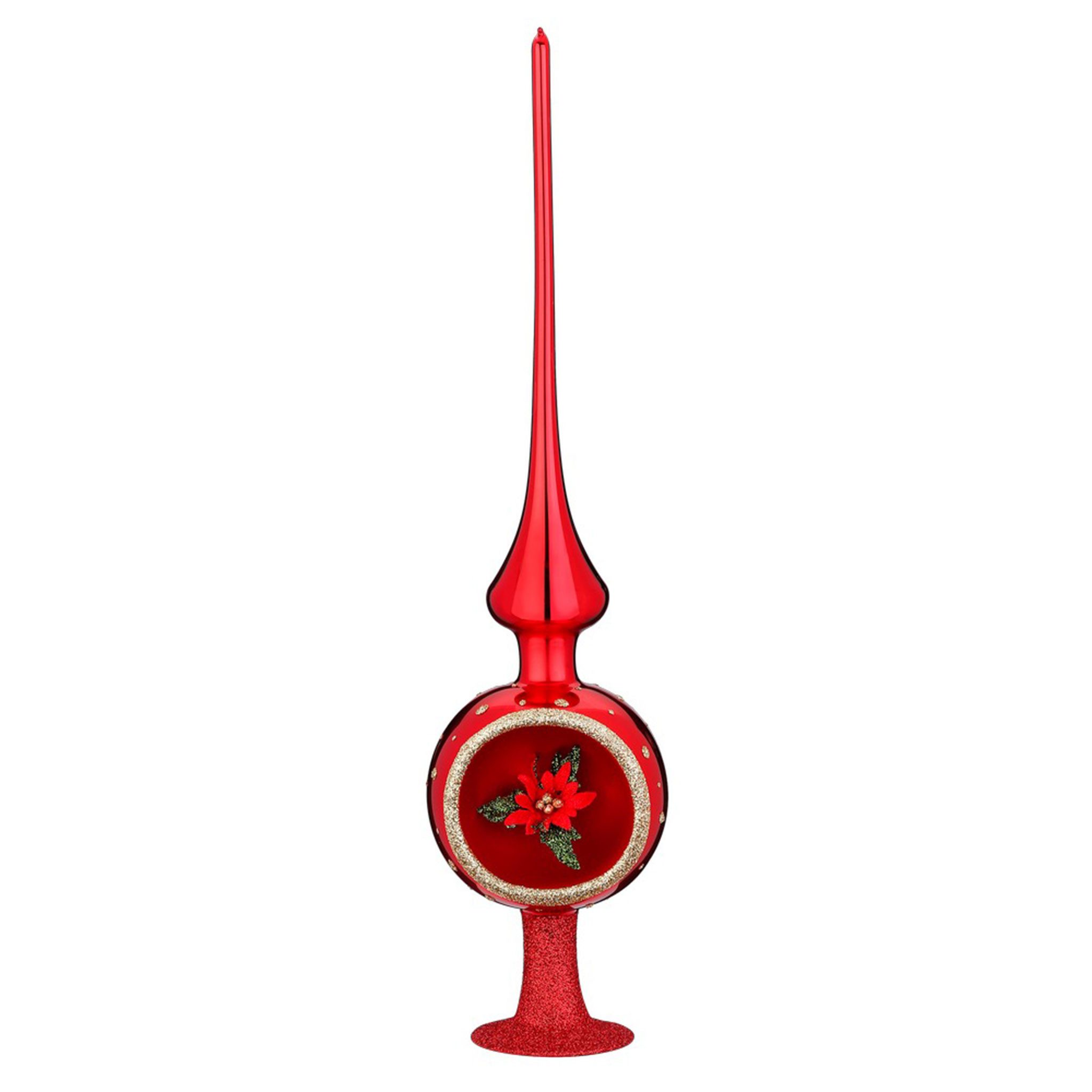 PRODUKT: Weihnachtsspitze "Weihnachtsstern" Glanz / HÖHE: ca. 33 cm / MATERIAL: Glas / INHALT: 1 Spitze / FARBTON: rot - weihnachtsrot - knallrot - verkehrsrot - gold - grün