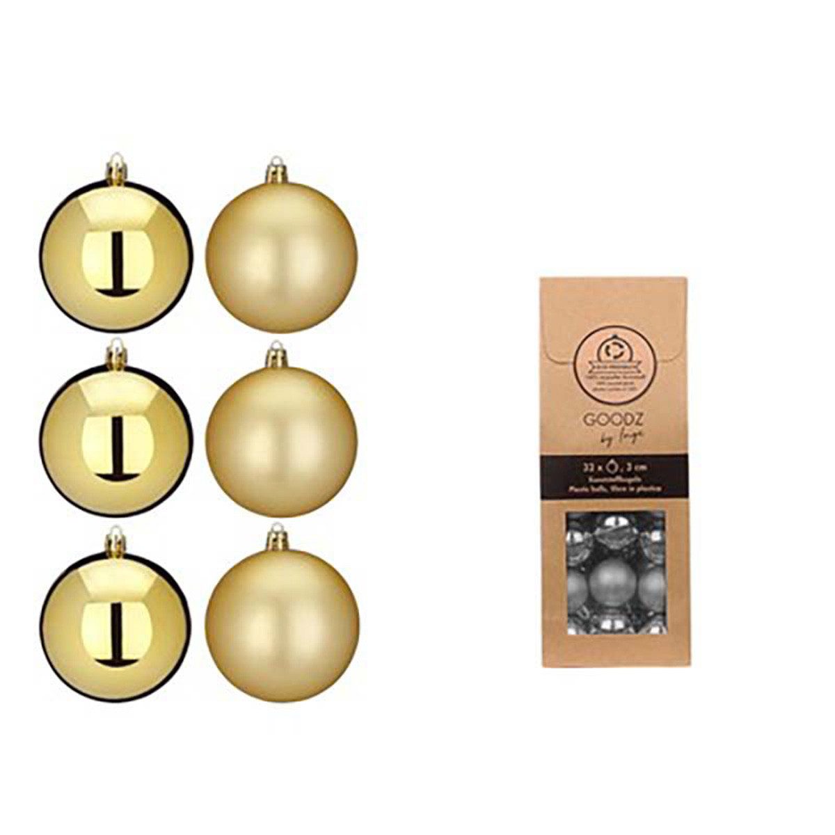 Die Inge-Glas Weihnachtskugeln Gold 3 cm bringen festlichen Glanz in deine Weihnachtsdekoration. Das 32-teilige Set besteht aus bruchsicheren Kunststoff-Kugeln mit einem Durchmesser von 3 cm, perfekt für kleine Weihnachtsbäume, Tischdekorationen, Adventsgestecke oder als Geschenkanhänger. Das Set kombiniert glänzende und matte Oberflächen, wodurch eine elegante und abwechslungsreiche Optik entsteht. Der edle Goldton verleiht deinem Baum oder deiner Dekoration ein klassisch festliches Ambiente und lässt sich wunderbar mit Rot, Grün oder Naturmaterialien kombinieren. Dank des bruchsicheren Kunststoffs sind die Kugeln sicher für Haushalte mit Kindern oder Haustieren. Sie sind leicht, robust und langlebig und lassen sich mit der praktischen Aufhängeöse schnell und einfach befestigen. Die Inge-Glas Mini-Kugeln in Gold sind die perfekte Wahl für filigrane Dekorationen und ergänzen sowohl klassische als auch moderne Weihnachtsstile.