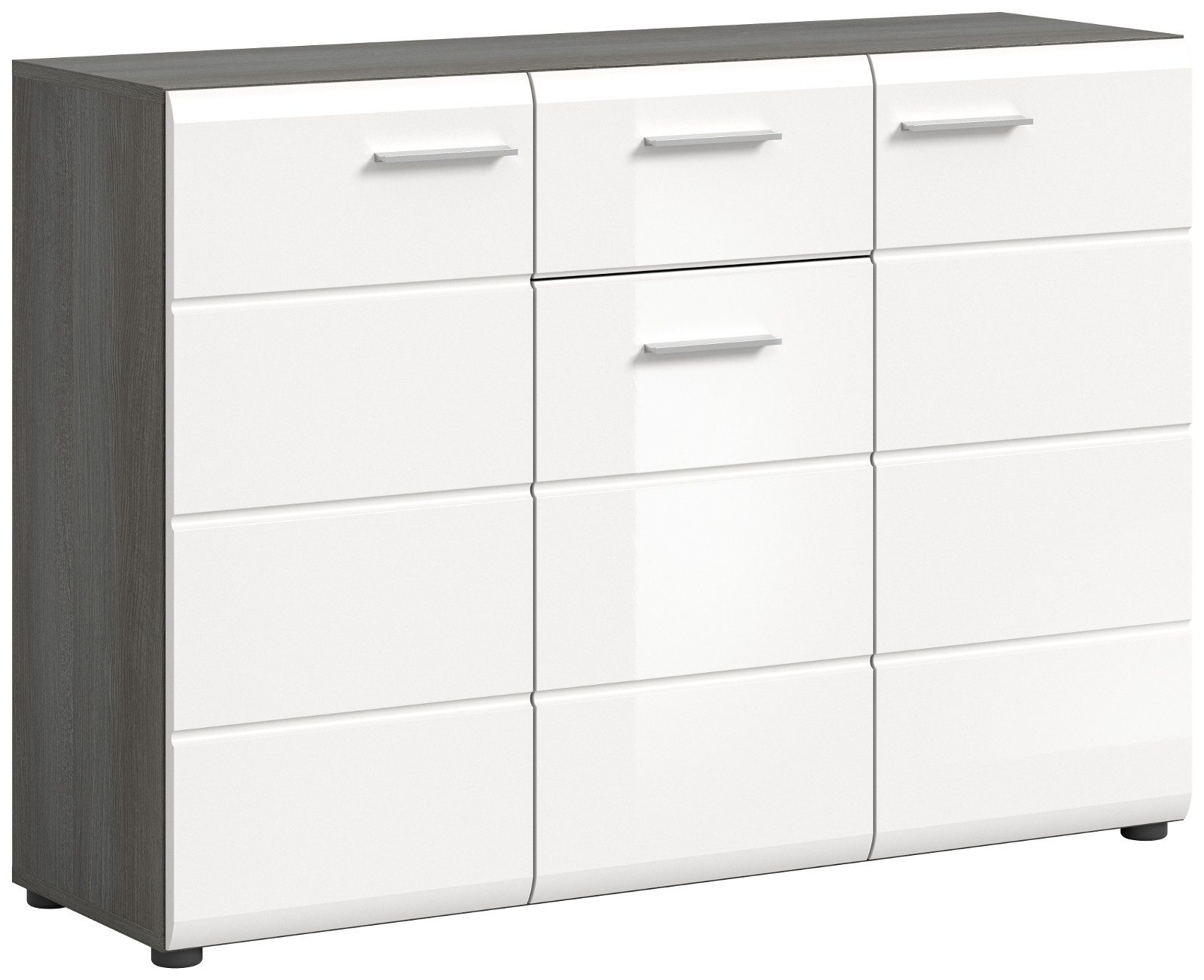 Sideboard "Rumba", weiß Hochglanz und Rauchsilber grau, 120 x 85 cm