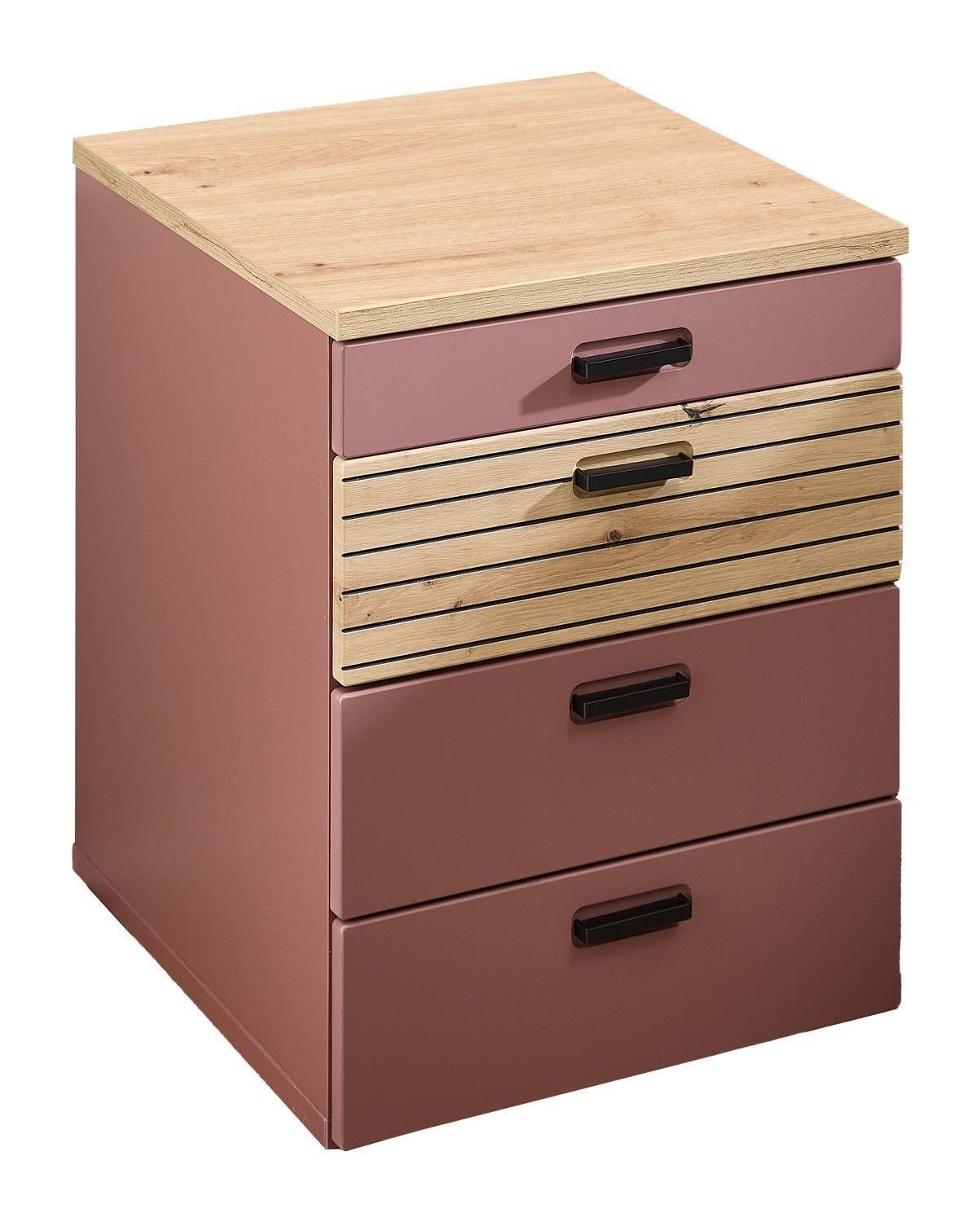 Lieferumfang | 1 Nachttisch mit 3 Schubladen, 2 gebremsten Rollen und 2 ungebremsten Rollen |