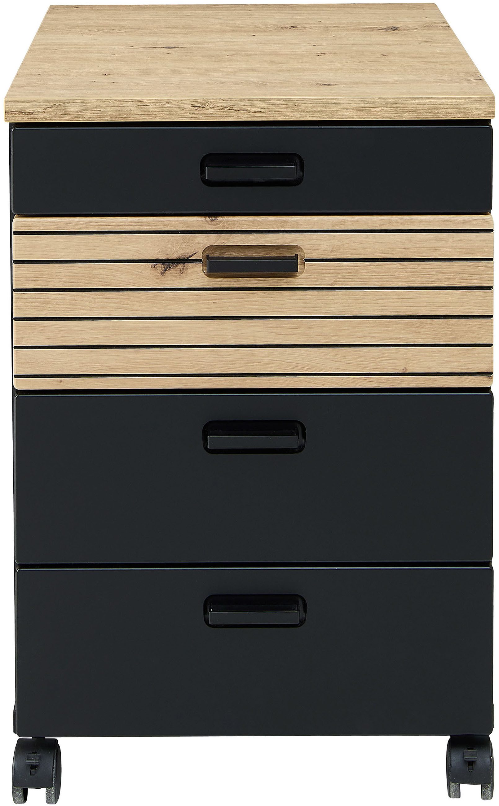 Der Schrank bietet mit seinen vier geräumigen Schubkästen reichlich Stauraum für Unterlagen und Büromaterial. Mit seinen kompakten Maßen passt er unter jeden Schreibtisch.