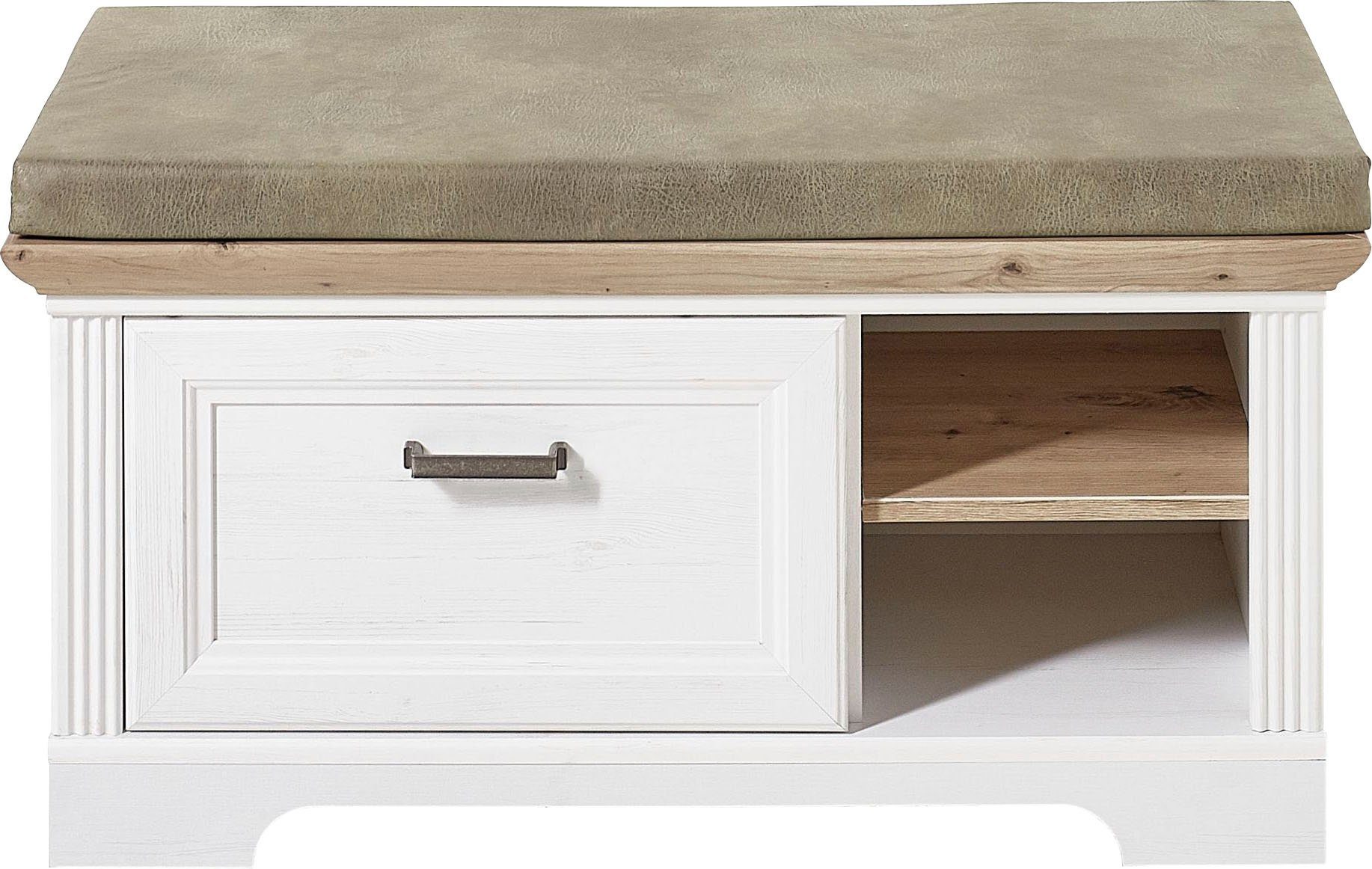 Ergänzende Maßangaben | Schubkasteninnenmaße (B/T/H): ca. 44,2/28,5/18,6 cm Fachmaße (B/T/H): ca. 26,7/33/13,8 cm Regalböden belastbar bis max. 7 kg |
