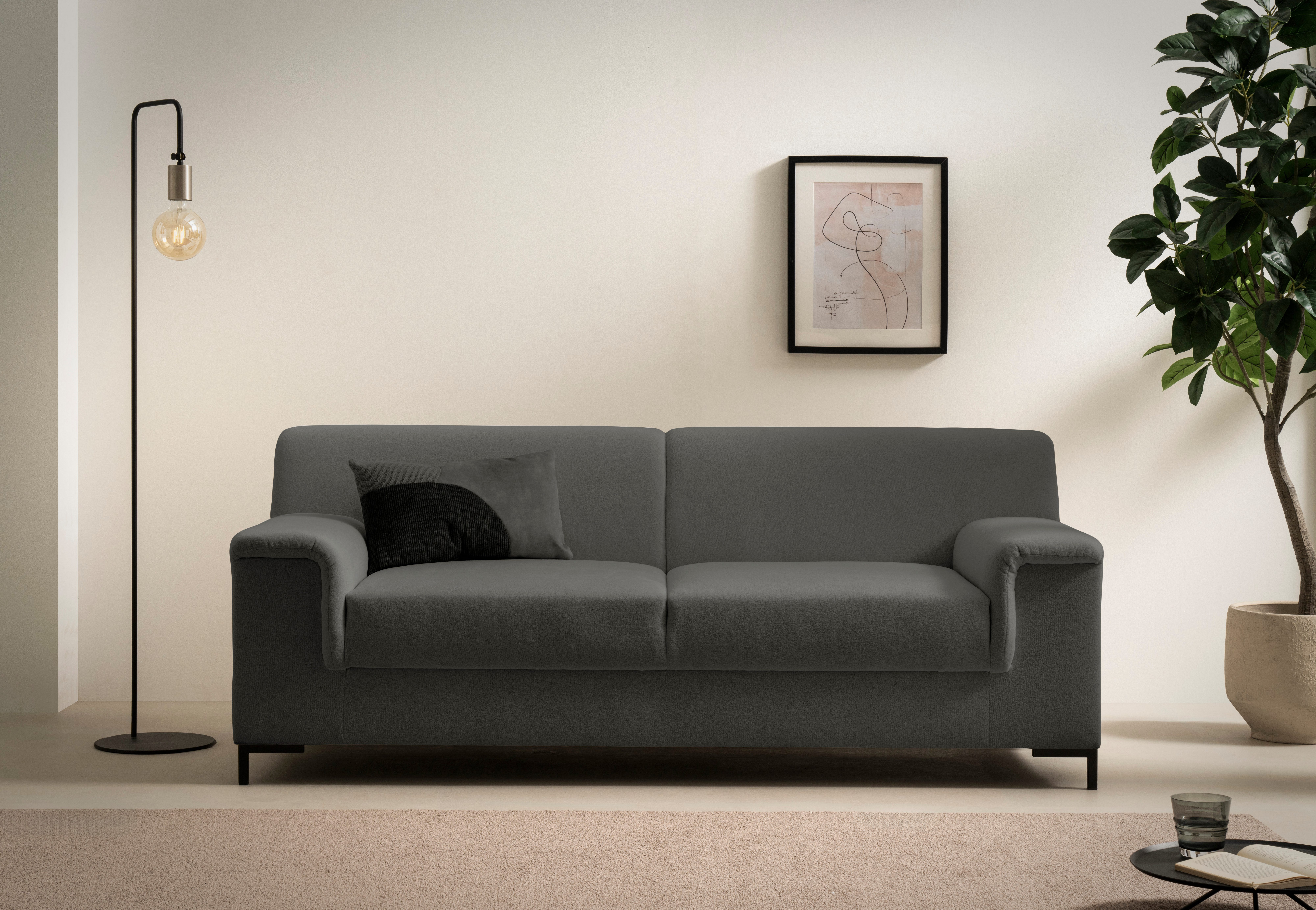 Dieser 2,5-Sitzer »Jamie 2 auch in Cord B/T/H: 192/81/76 cm« von INOSIGN bietet dir dank der Wellenunterfederung hohen Sitzkomfort und Tragfähigkeit. Die schwarzen Füße aus Metall sind korrosionsbeständig und besonders langlebig. Aus Liebe zum Detail wurde dieses Modell von Hand angefertigt.