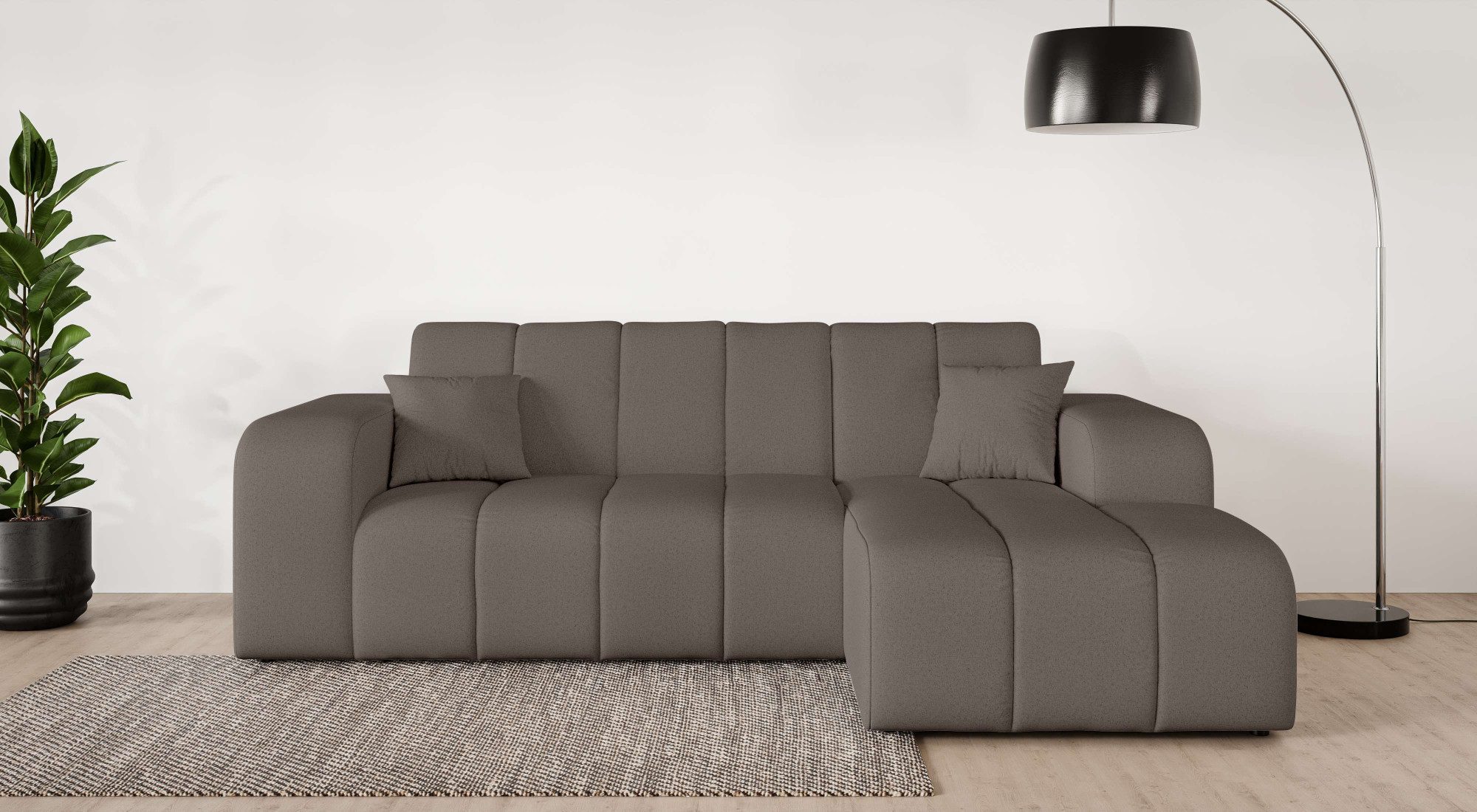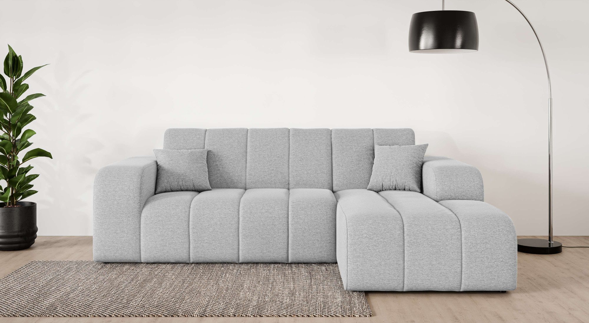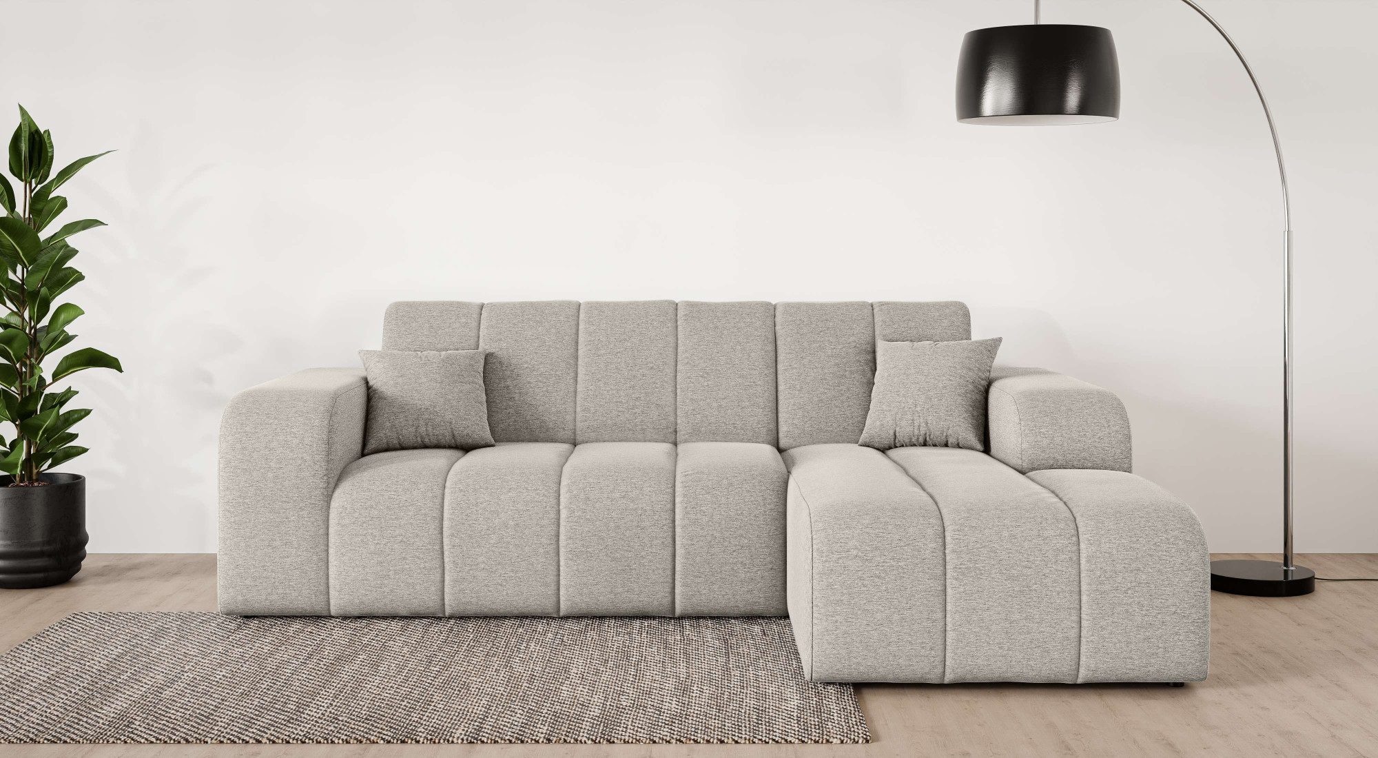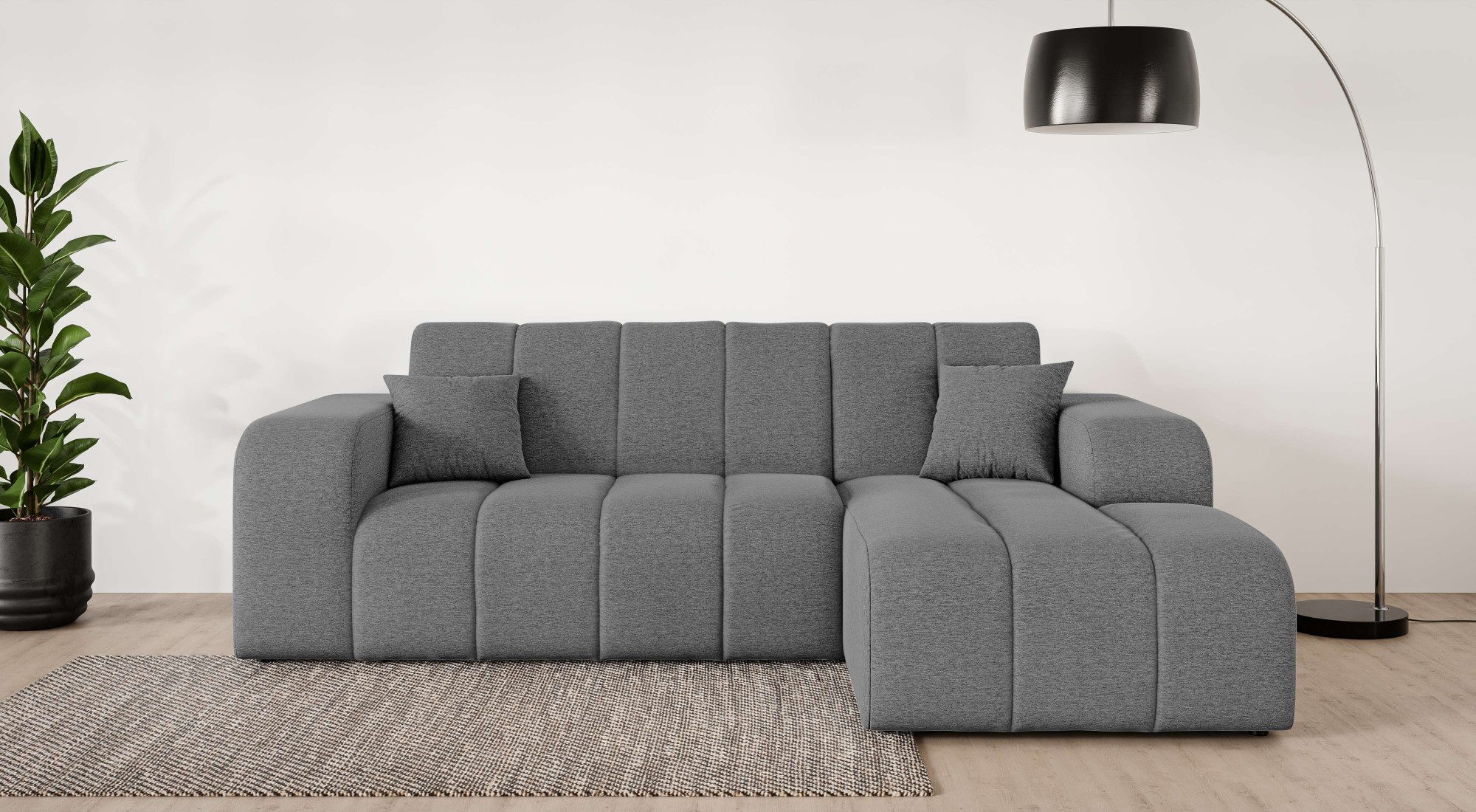 Eine dauerhaft elastische und komfortable Sitzfläche — das bekommst du bei diesem Ecksofa »CASSY L-Form, Schlafsofa mit Bettkasten, Maße B/T/H: 245/165/88 cm« von INOSIGN, das mit einer hochwertigen Wellenunterfederung ausgestattet ist. Außerdem kann das Möbelstück ein separates Gästebett ersetzen und somit Platz einsparen, denn es ist mit einem praktischen Bettkasten versehen. Ein weiterer Vorteil sind die passenden Zierkissen, die dekorativ und zugleich komfortabel sind. Von vorne betrachtet ist die Recamiere nach rechts ausgerichtet. Die maximale Belastbarkeit pro Sitzplatz liegt bei einem Gewicht von 125 Kilogramm. Durch den weichen Strukturstoff erhält der Bezug durch miteinander verwobene Faserstränge, seine charakteristische und zugleich softe Oberfläche. Aus Liebe zum Detail wurde dieses Modell von Hand angefertigt.