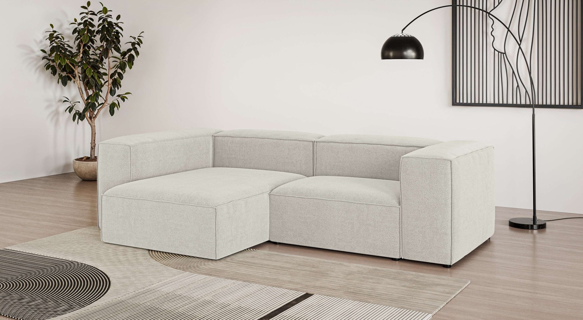 Durch die hochwertige Wellenunterfederung wird die Sitzfläche des Ecksofas »HAILY L-Form links/rechts, Modularsofa, Maße B/T/H: 260/160/72 cm« von INOSIGN gut gefedert und bleibt dauerhaft elastisch. Von vorne betrachtet ist die Ottomane nach links ausgerichtet. Die maximale Belastbarkeit liegt bei einem Gewicht von 320 Kilogramm. Der Bezug aus Strukturstoff ist angenehm weich, sehr beständig und neigt kaum zur Faltenbildung. Aus Liebe zum Detail wurde dieses Modell von Hand angefertigt.