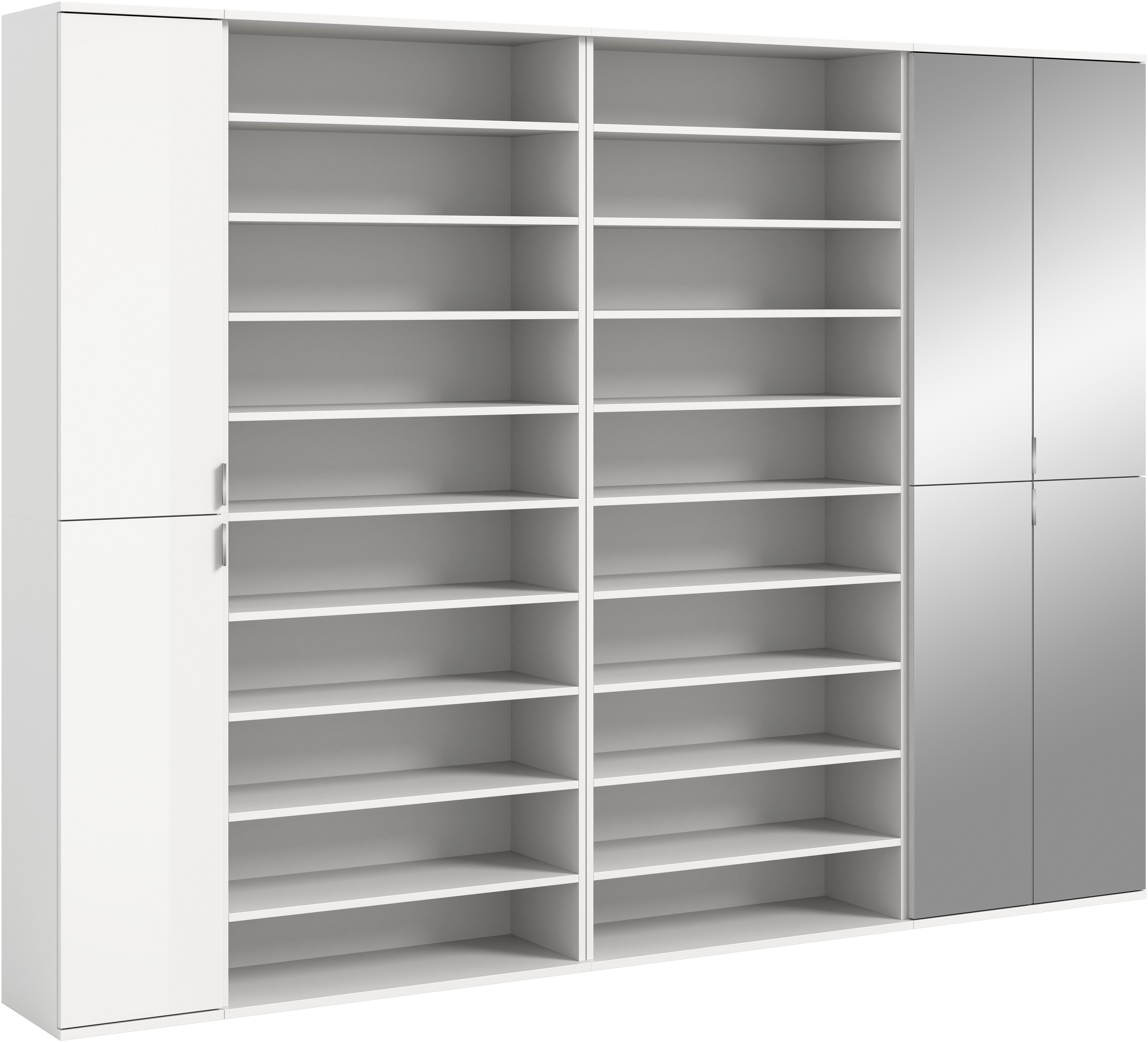 Ausstattung Schrank 2 | 4 Spiegeltüren 7 Einlegeböden 9 Fächer |