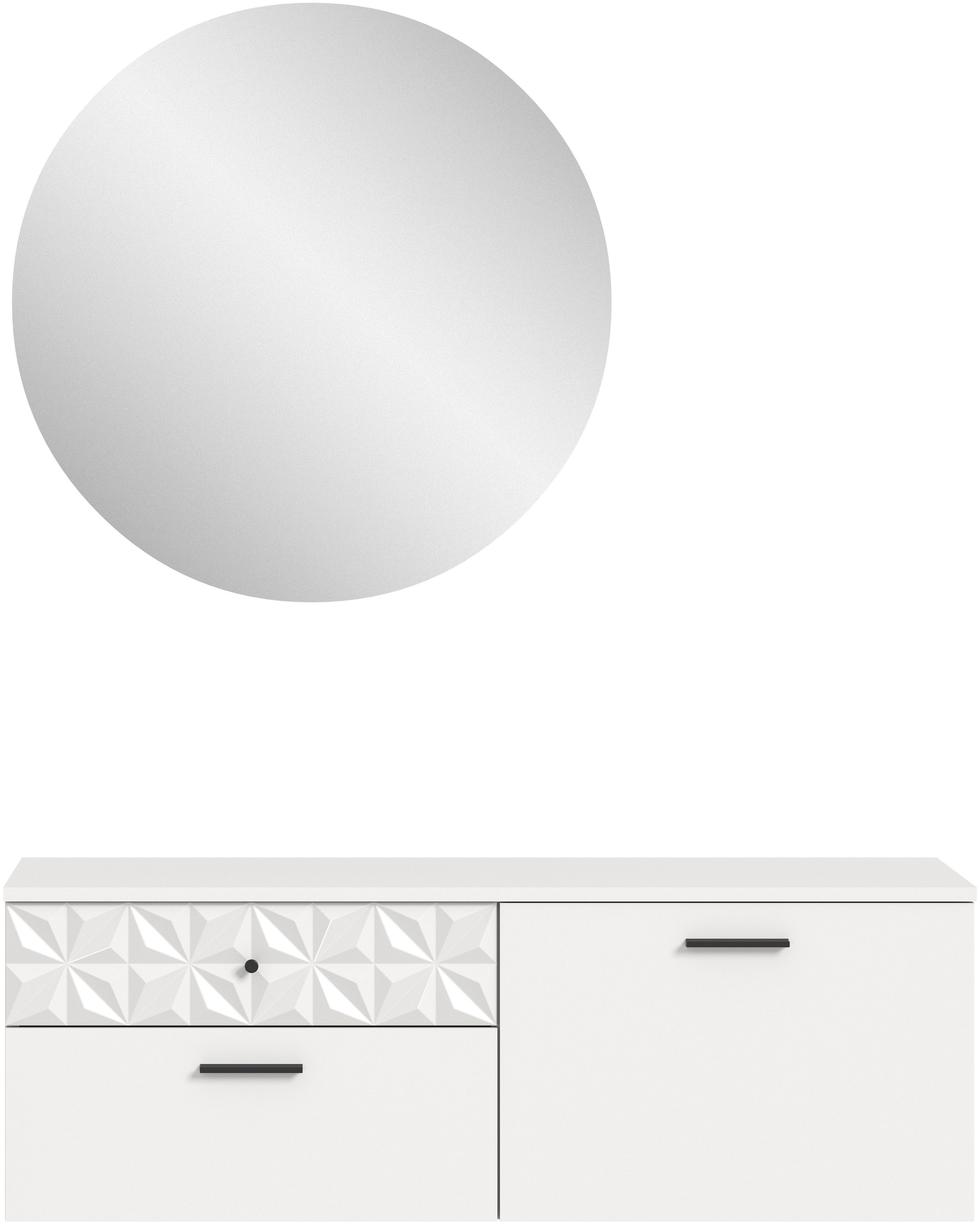 Set beinhaltet | 1 Hängeschuhschrank, 1 Spiegelschrank rund |