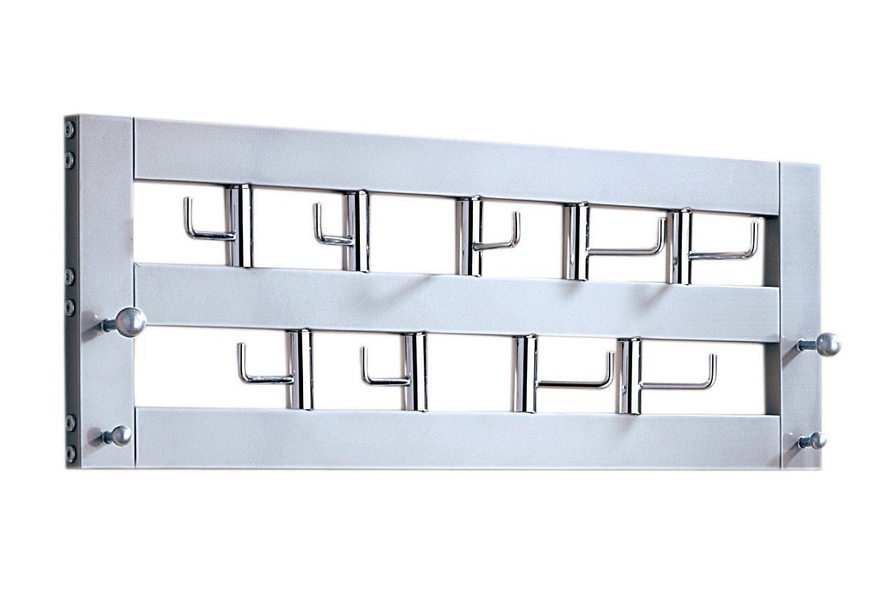 Wissenswertes | Rahmen aus Metall, pulverbeschichtet, bei Farben Natur und Braun aus Massivholz. Mit 4 Metallknöpfen und 9 drehbaren Kleiderhaken. Ca.-Maße (B/T/H): 60/7/25 cm. Mit Aufbauanleitung. |