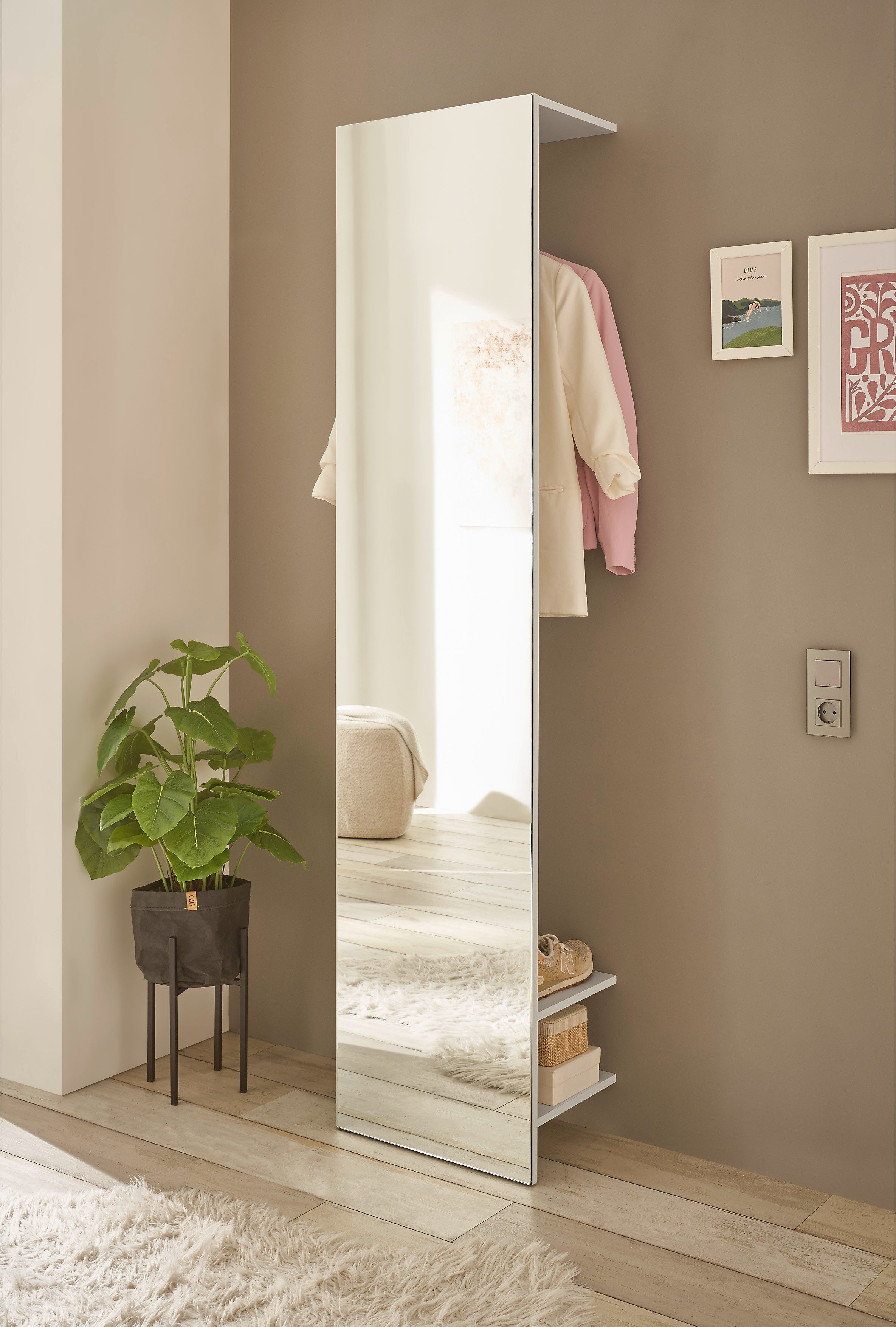 An diesem Garderobenschrank »GiRON/CiTY, Schrank mit Spiegelfront, moderner Kleiderschrank« von INOSIGN kann dein Besuch seine Jacken und Schuhe bequem ablegen. So sorgst du immer für einen aufgeräumten Flur. Aus Holzwerkstoff hergestellt, erhält der Schrank eine besonders stabile Struktur. Hergestellt wurde das Produkt in Europa.