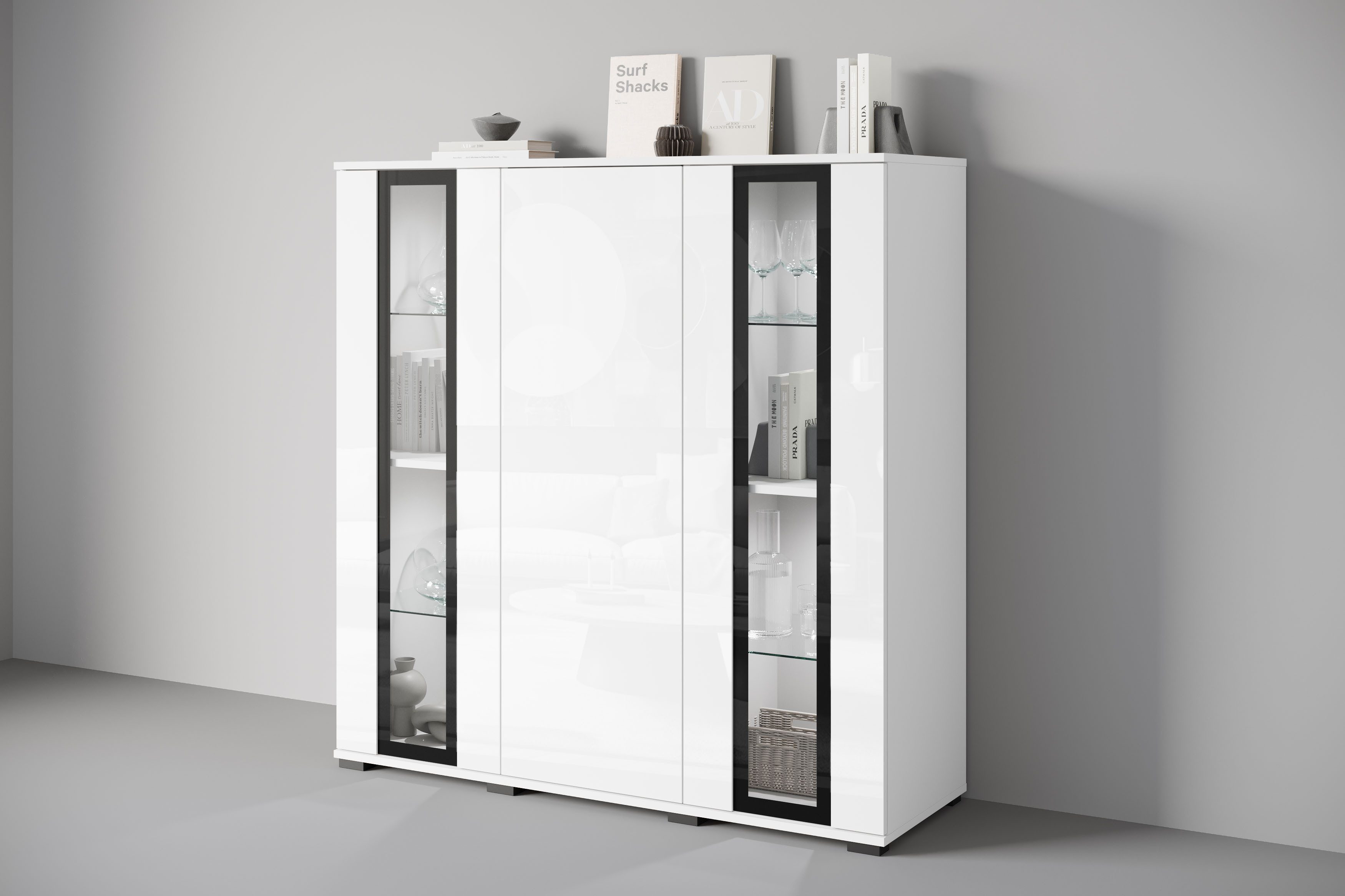 Stauraum, Ablage und schöner Blickfang in einem: Dieses Highboard »Caro, modernes Design mit Glaseinsätzen, Breite 120 cm« von INOSIGN ist ein flexibel einsetzbares Möbelstück, das sich ganz nach deinen Vorstellungen platzieren und dekorieren lässt. Da das Sideboard mit Push-to-open-Funktion ausgestattet ist, reicht schon ein kurzer Druck und die grifflosen Türen öffnen sich wie von allein. Das ist praktisch und sorgt für eine cleane Optik.