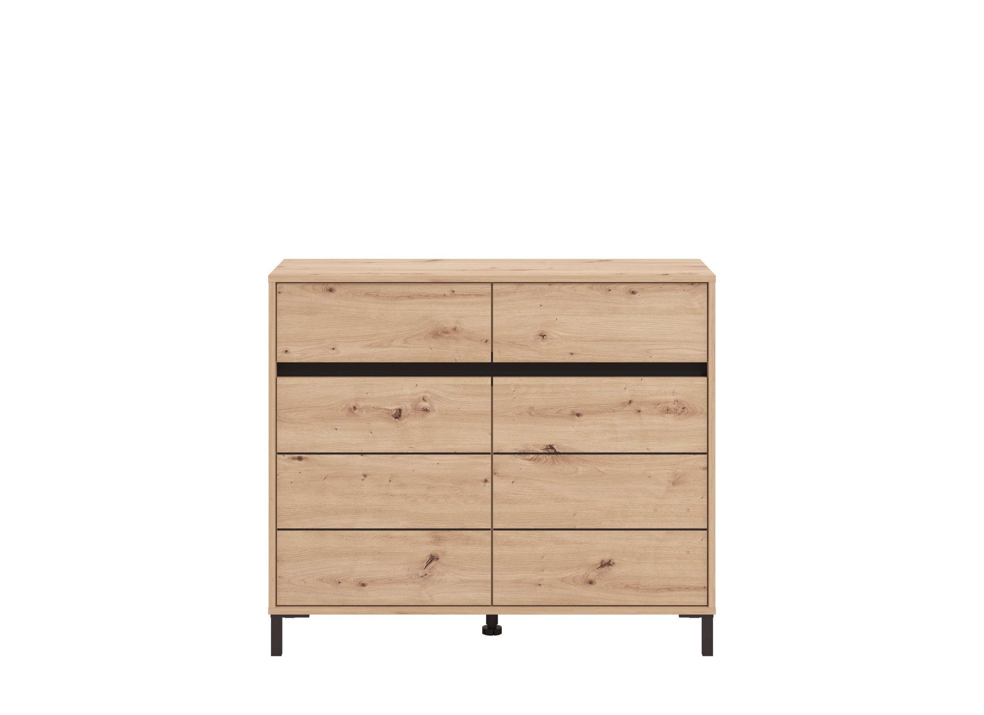 Die Kommode präsentiert sich im zeitlosen und modernen Look, der vielseitig kombinierbar ist. Als Inspiration: Indem du die Einrichtung-Accessoires in dezenten Farben wie Weiß oder Grau hältst, unterstreichst du den minimalistischen, cleanen Stil. Es ist Teil der Marron Serie. Впередe Artikel hieraus lassen sich besonders gut dazu kombinieren.