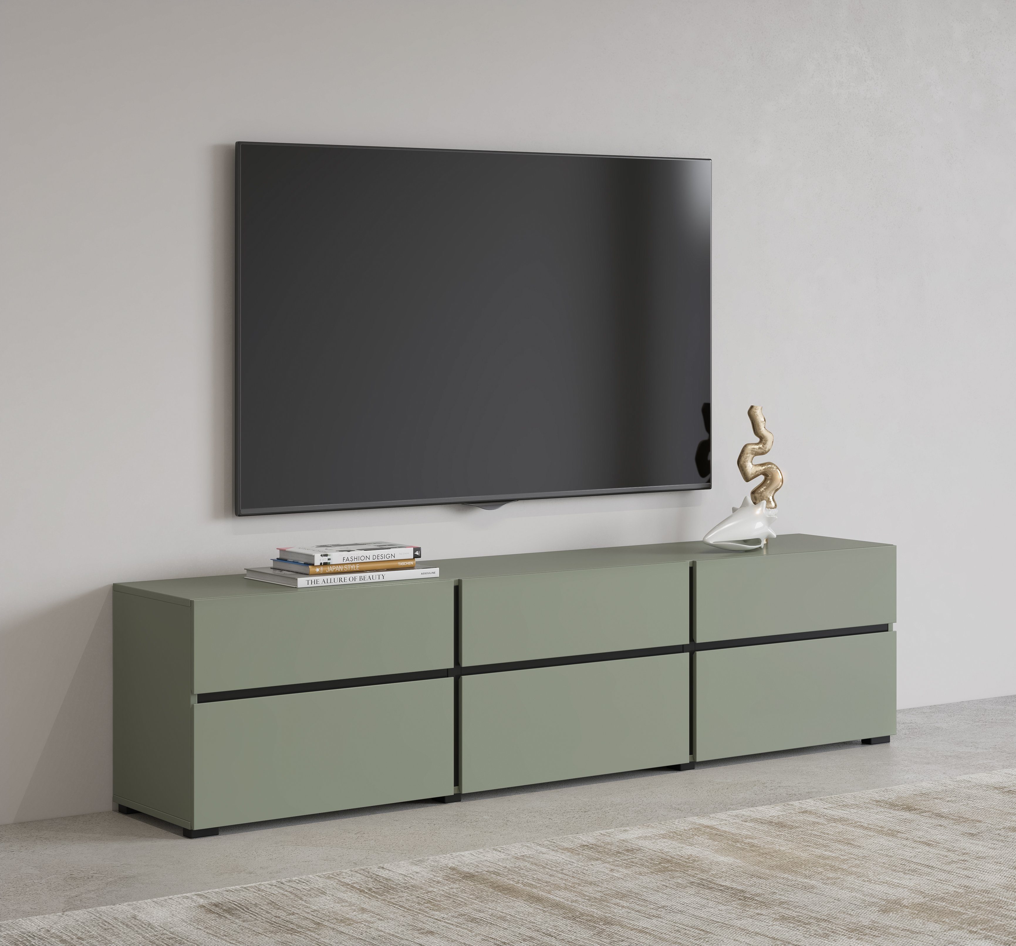 Mach deine Wohnlandschaft komplett mit diesem Lowboard »Cross, moderne grifflose TV-Kommode,3 Klappen/3 Schubkästen« von INOSIGN . Es bietet dir zusätzlichen Platz zum Verstauen deiner Sachen. Auch dein Flatscreen kann darauf Platz finden. Die Schubladen bieten dir weitere Unterbringungsmöglichkeiten.
