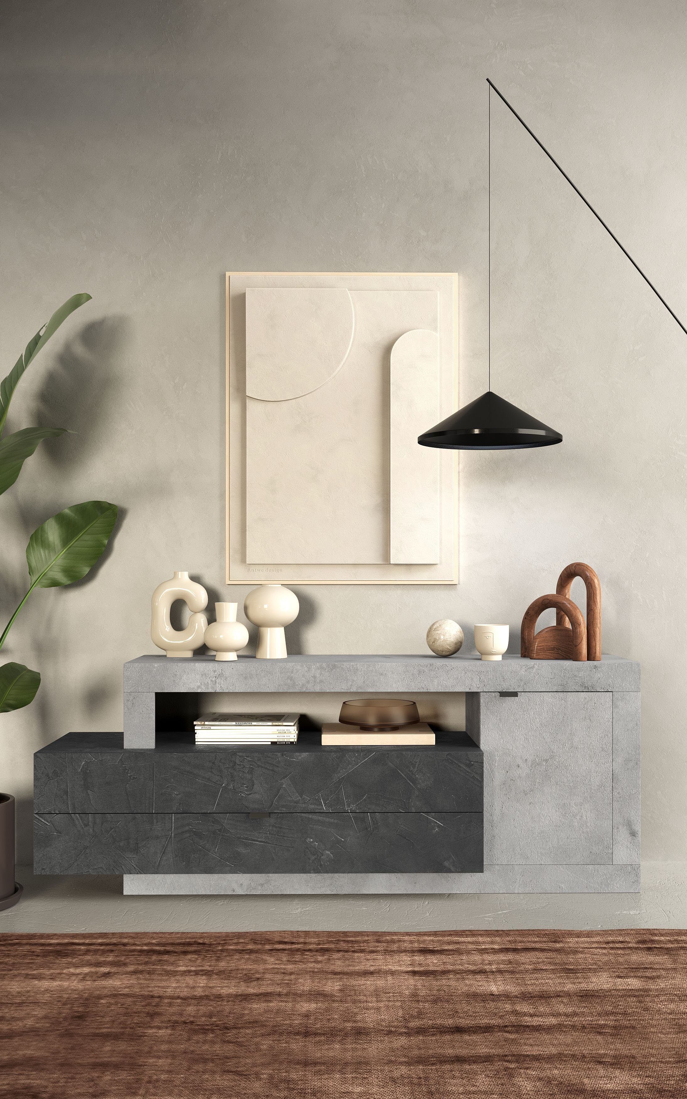 Du fragst dich, wie sich das Möbelstück kombinieren lässt? Hier eine kleine Inspiration für dich: Die Ästhetik des modernen Stils ist reduziert und strahlt eine schlichte Eleganz aus. Indem du die Einrichtung in dezenten Farben wie Weiß oder Grau hältst, Materialien aus Glas oder Naturstein bevorzugst und dich aufs Wesentliche fokussierst, unterstreichst du die Schönheit des Minimalismus.