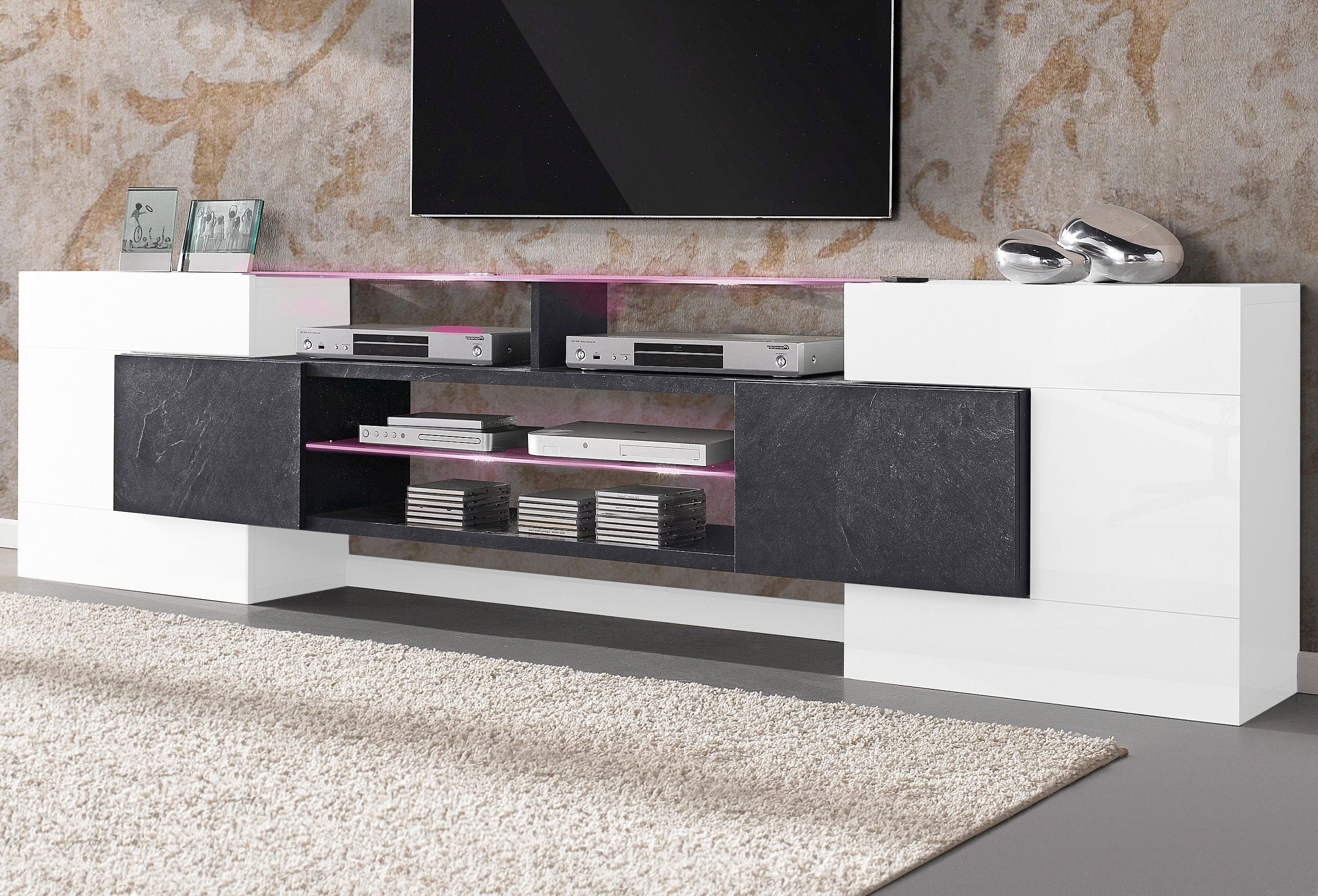 Wissenswertes | TV-Lowboard in verschiedenen Farbausführungen. Korpus und Fronten Hochglanz lackiert. Ganzmetall-Scharniere. Bestehend aus: