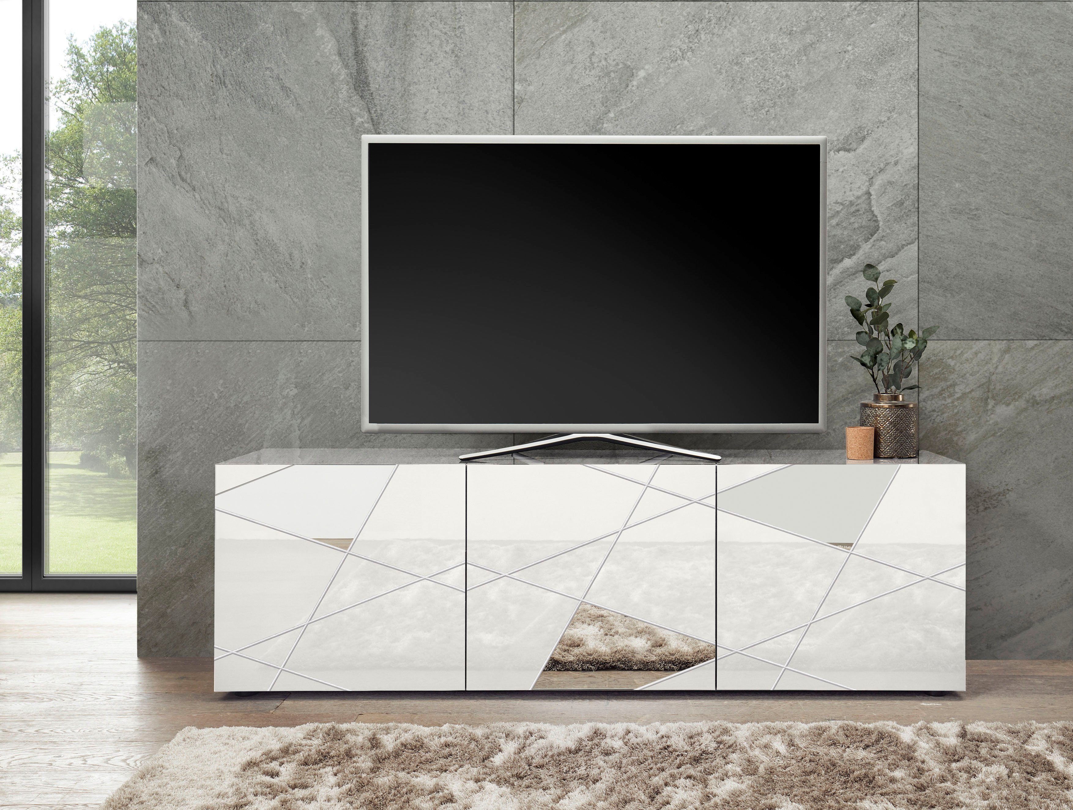 Wissenswertes | 1 festen Konstruktionsboden 1 x Türanschlag links 2 lose Einlegeböden 2 x Türanschlag rechts Front mit Siebdruck und Spiegel grifflos |