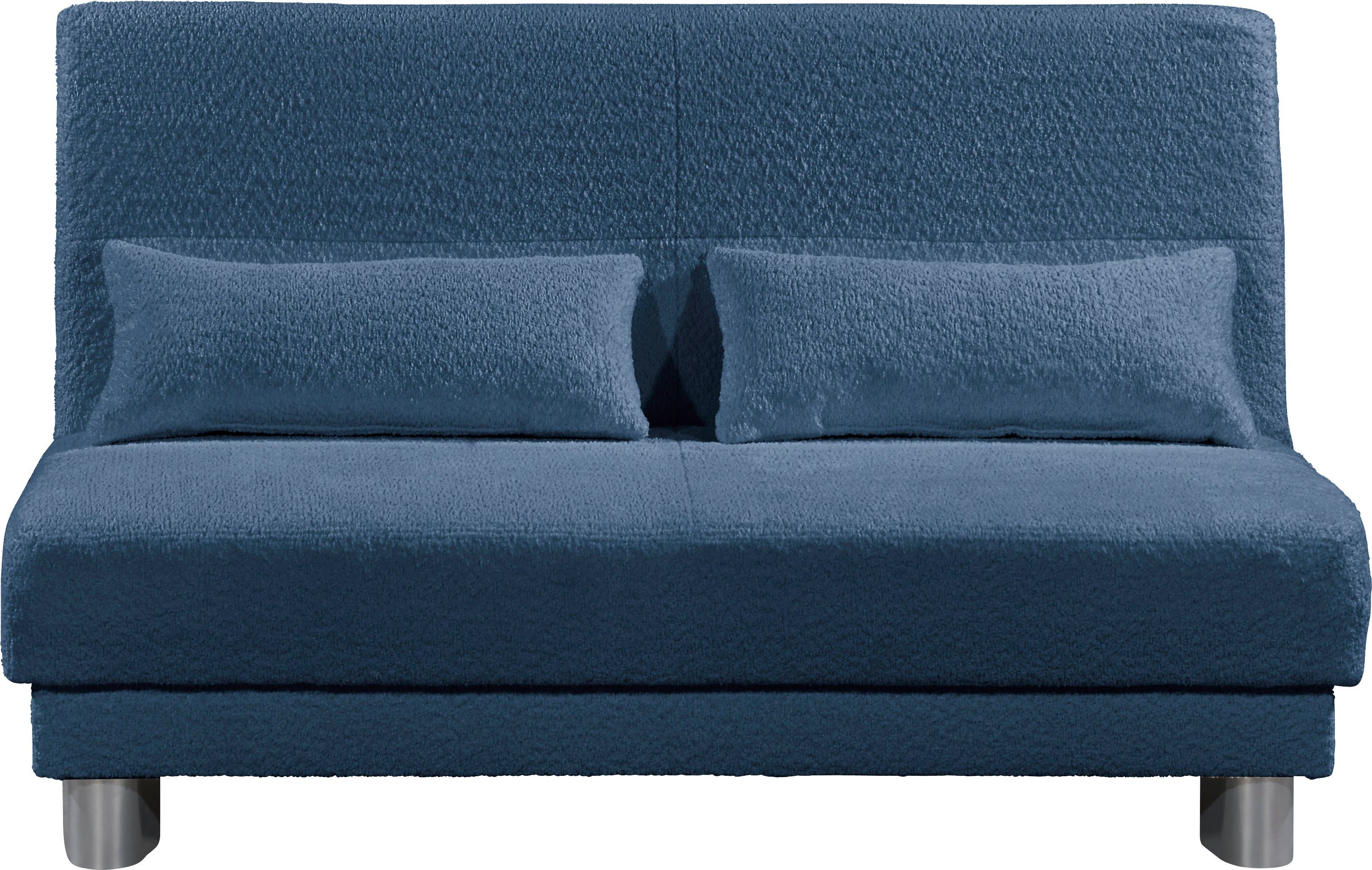Hohen Sitzkomfort und eine gute Luftzirkulation bietet dir dieses Schlafsofa »Gina« von INOSIGN dank der Kaltschaumpolsterung. Zudem kann das Möbelstück ein separates Gästebett ersetzen und somit Platz einsparen, denn es ist mit einer ausziehbaren Liegefläche versehen. Ein weiterer Vorteil ist das passende Kissen, das dekorativ und zugleich komfortabel ist. Die Couch ist manuell verstellbar. So kannst du mit ein paar Handgriffen deine bevorzugte Position einstellen. Die maximale Belastbarkeit liegt bei einem Gewicht von 110 Kilogramm. Die alufarbenen Füße aus Metall sind korrosionsbeständig und besonders langlebig. Praktischerweise ist das Produkt fertig montiert und lässt sich ganz ohne große Mühe und Aufwand direkt nutzen.