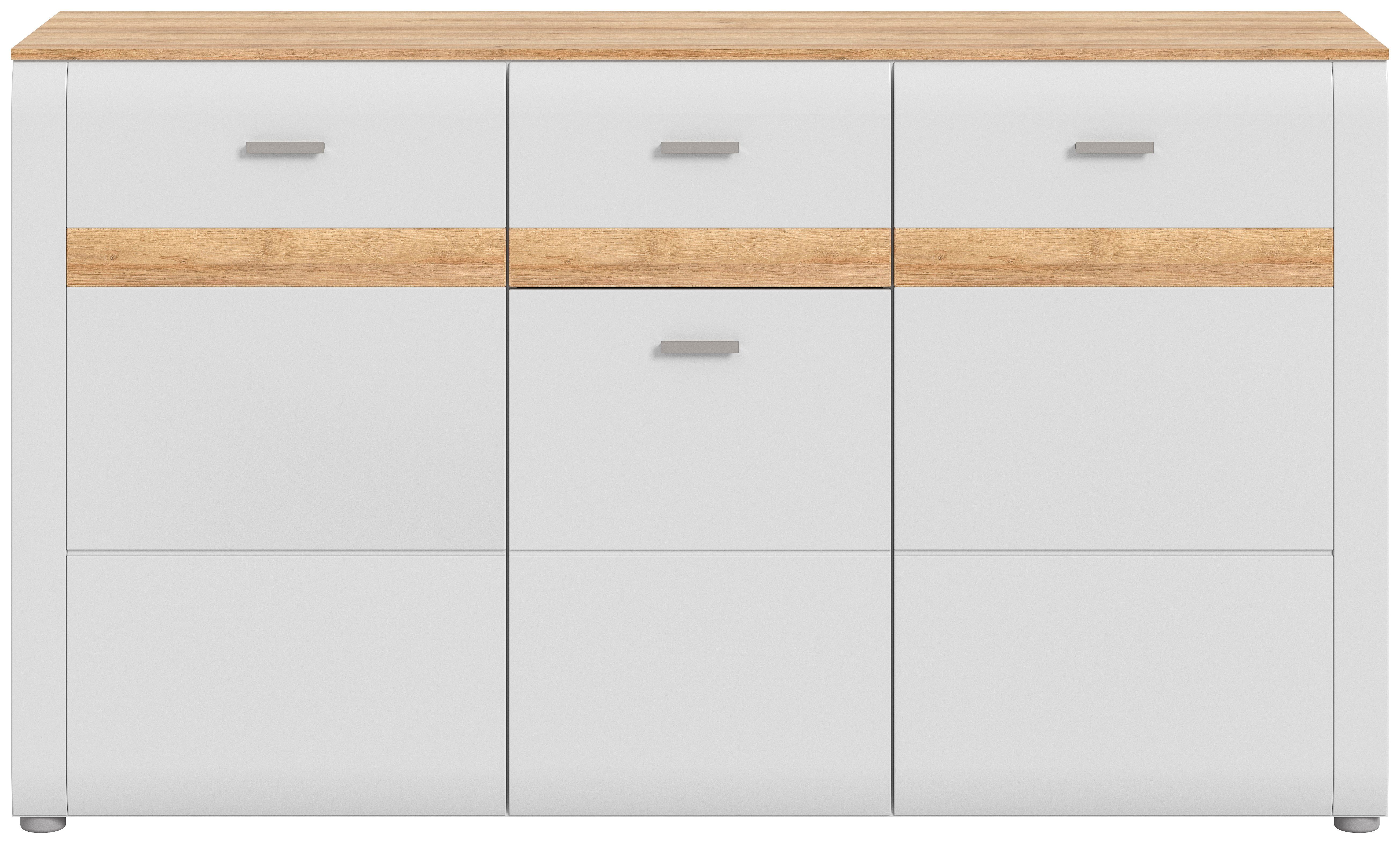 Kompakte Größe, zusätzliche Aufbewahrungsmöglichkeiten und eine Ablagefläche, die sich vielseitig gestalten lässt — dieses Sideboard »Aska, Breite 150cm, Metallgriffe,3 Türen,1 Schubkästen, 2 Einlegeböden« von INOSIGN erfüllt dir deine Einrichtungswünsche. In Polen wurde das Produkt hergestellt. Dank der Aufbauanleitung kannst du die Montage selbst vornehmen.