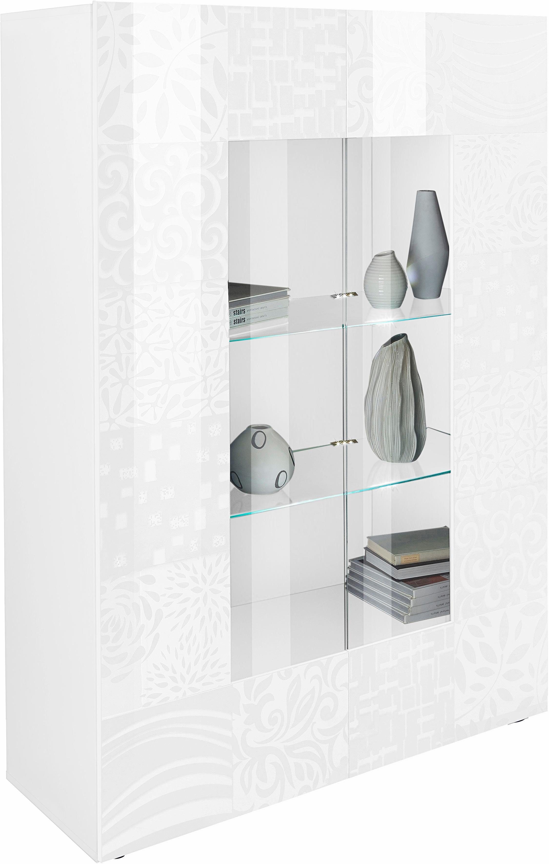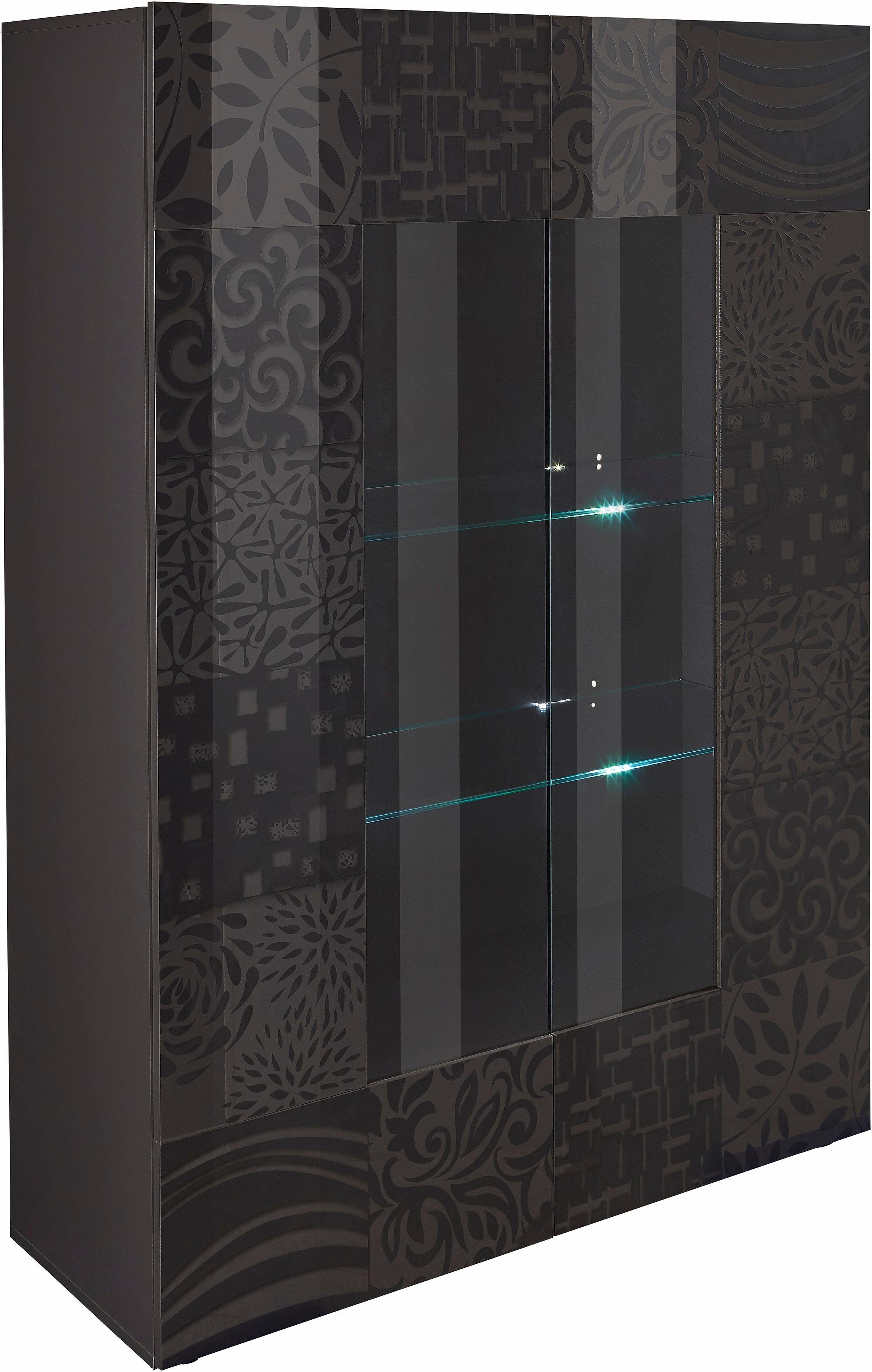Wissenswertes | Das Modell »MIRO« überzeugt durch seine elegante Front mit modernen, dekorativen Siebdruck. Ein wirklich stilvolles, italienisches Programm. Das Highlight in jedem Wohn- und Essbereich! Vitrine in 3 Ausfuehrungen Weiss Hochglanz Lack - Front Weiss mit Siebdruck Hochglanz Lack Anthrazit Hochglanz Lack - Front Anthrazit mit Siebdruck Hochglanz Lack Eiche Sonoma Melamin - Front Eiche Sonoma mit Siebdruck In folgenden Farben erhältlich: