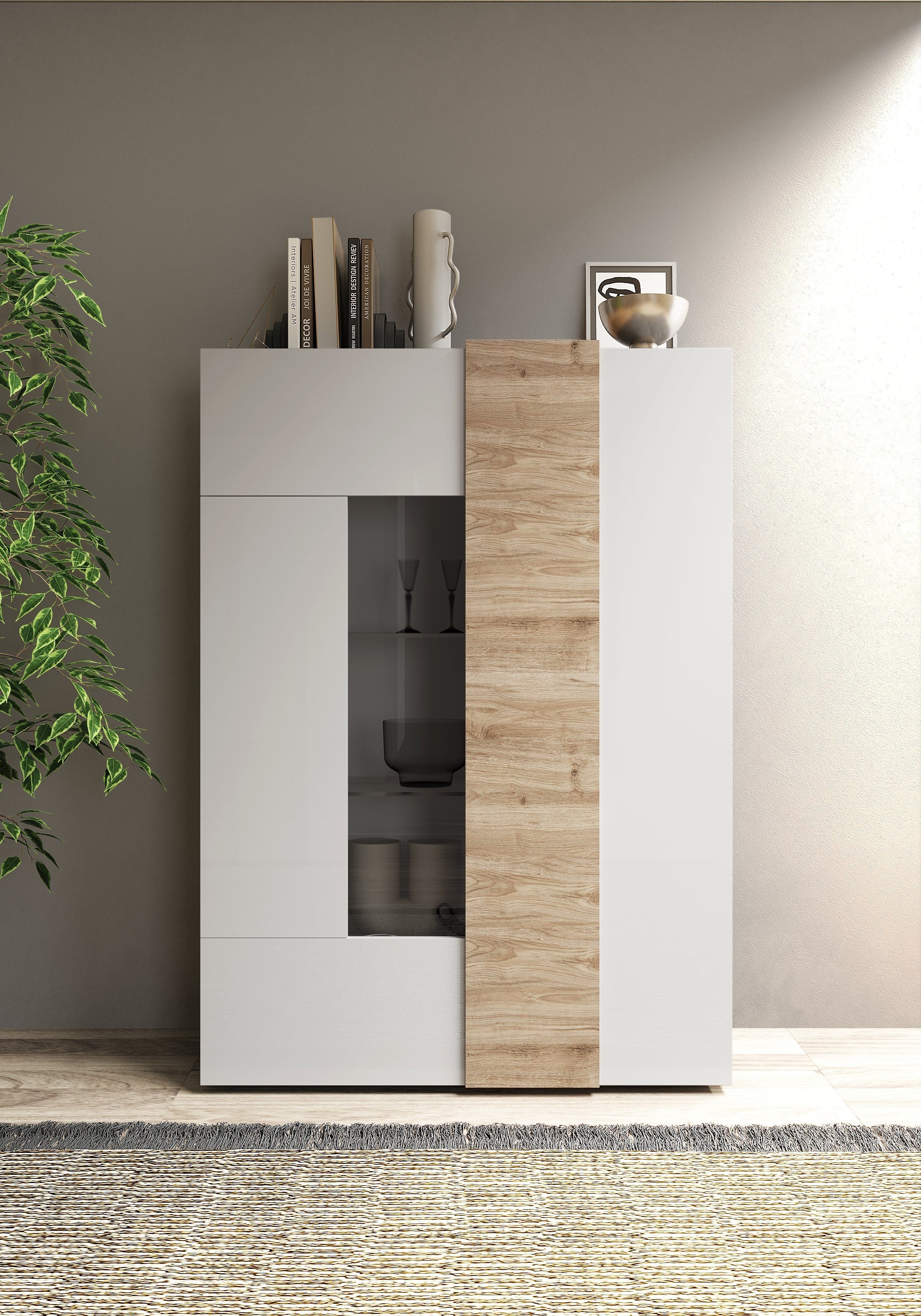 Die Vitrine zeigt sich im modernen Stil und kreiert ein stilvolles Ambiente. Indem du die Einrichtung in dezenten Farben wie Weiß oder Grau hältst, Materialien aus Glas oder Naturstein bevorzugst und dich aufs Wesentliche fokussierst, unterstreichst du die Schönheit des Minimalismus.
