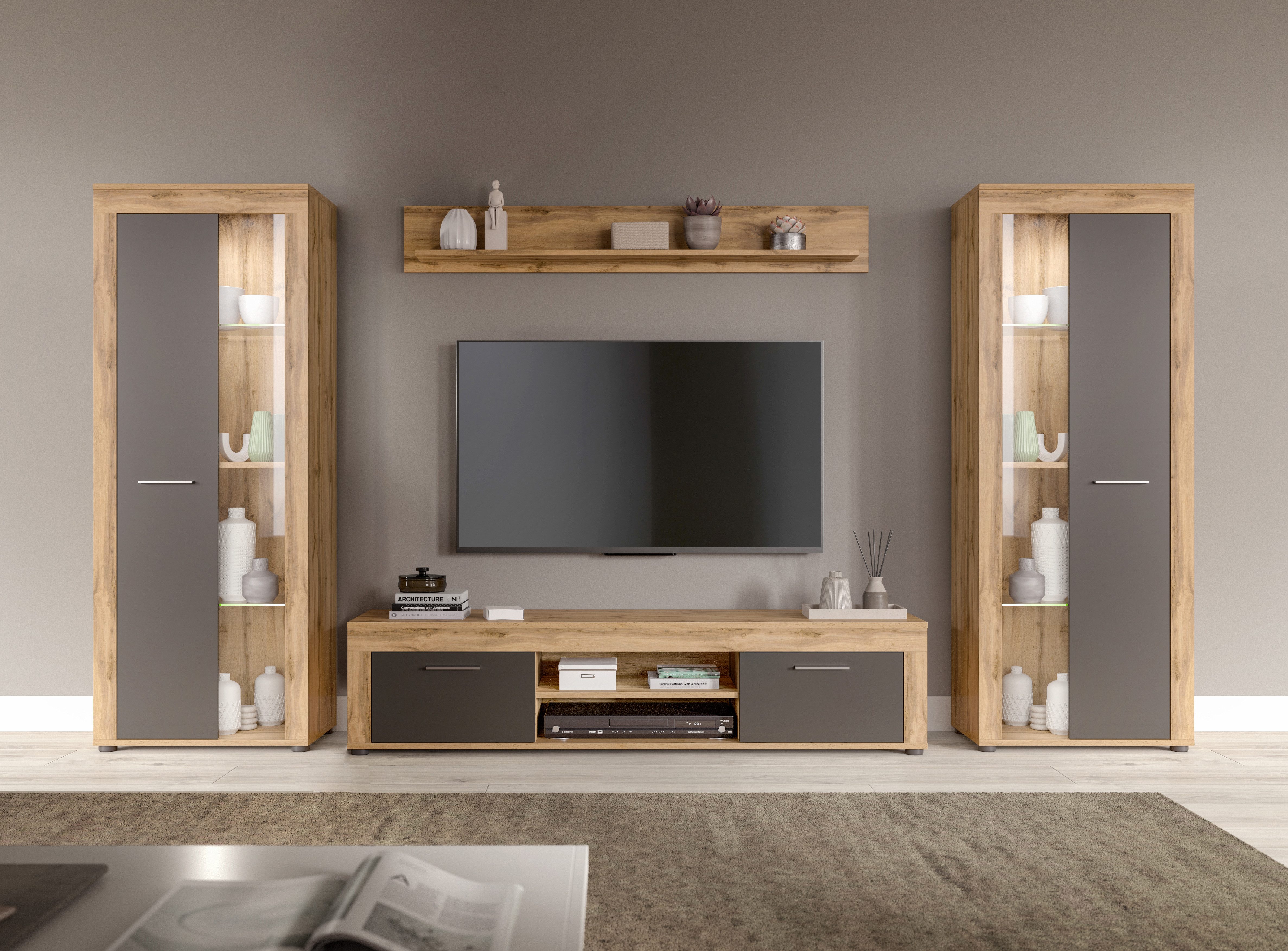 Set beinhaltet | 2x Vitrine, 1x Lowboard, 1x Wandboard |