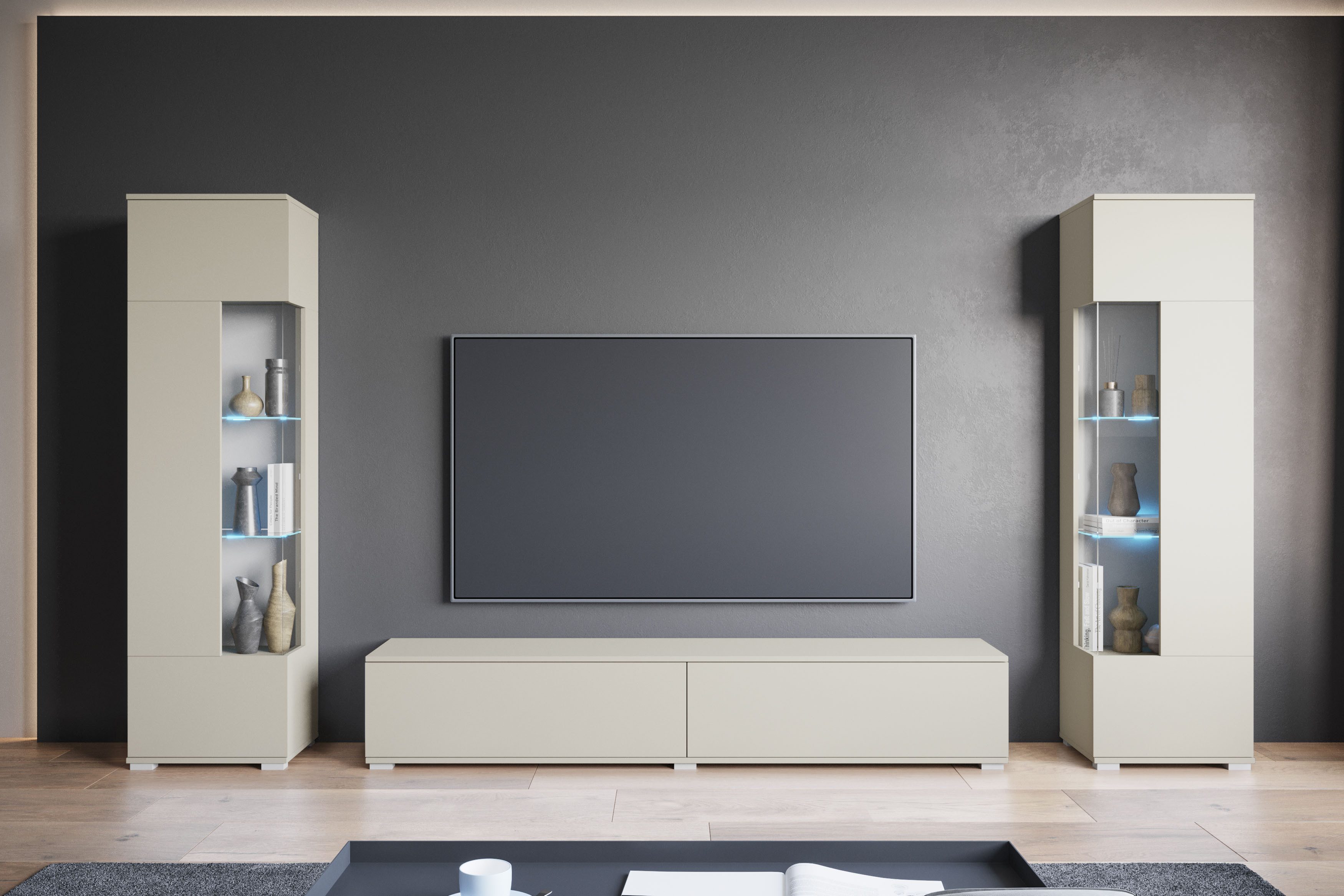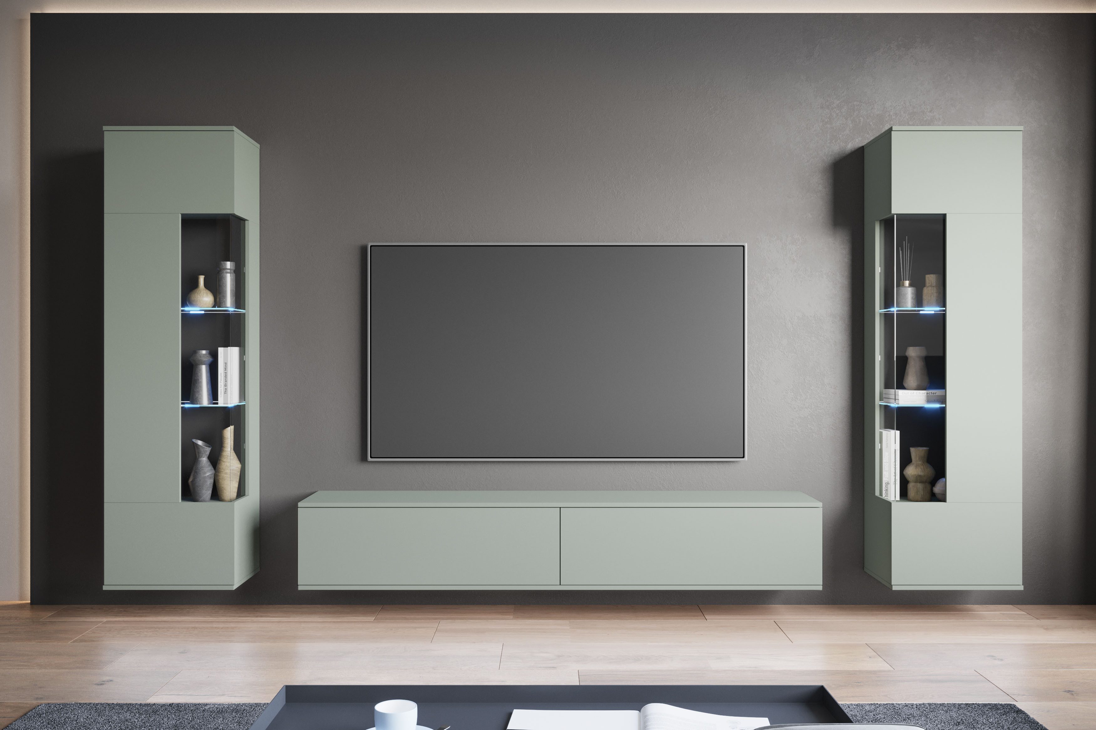 Funktionen | FSC®-zertifizierter Holzwerkstoff Ganzmetall-Scharniere Grifflos Ideal für kleine Räume In hochwertiger Verarbeitung In verschiedenen Farben Mit Glastüren Moderne Trendfarben Pflegeleichte Oberflächen Viel Stauraum |