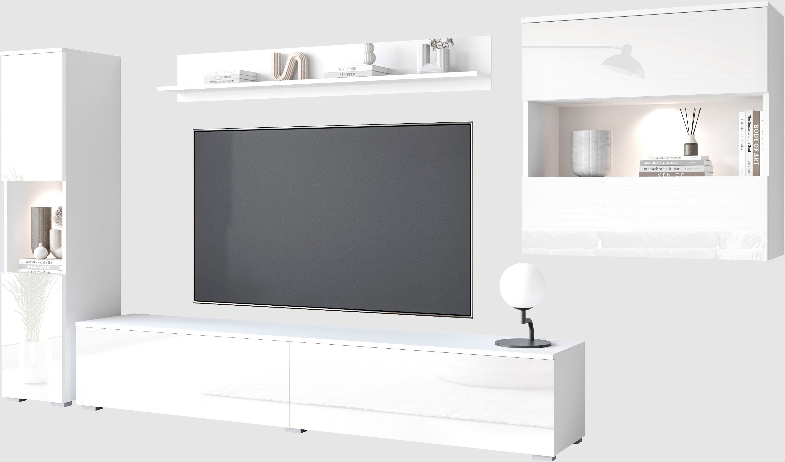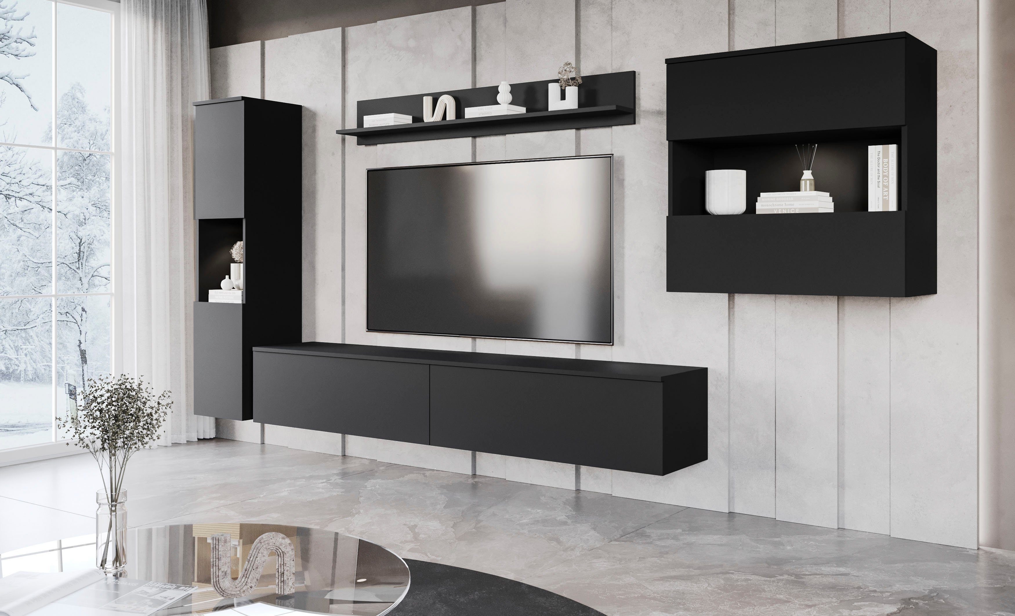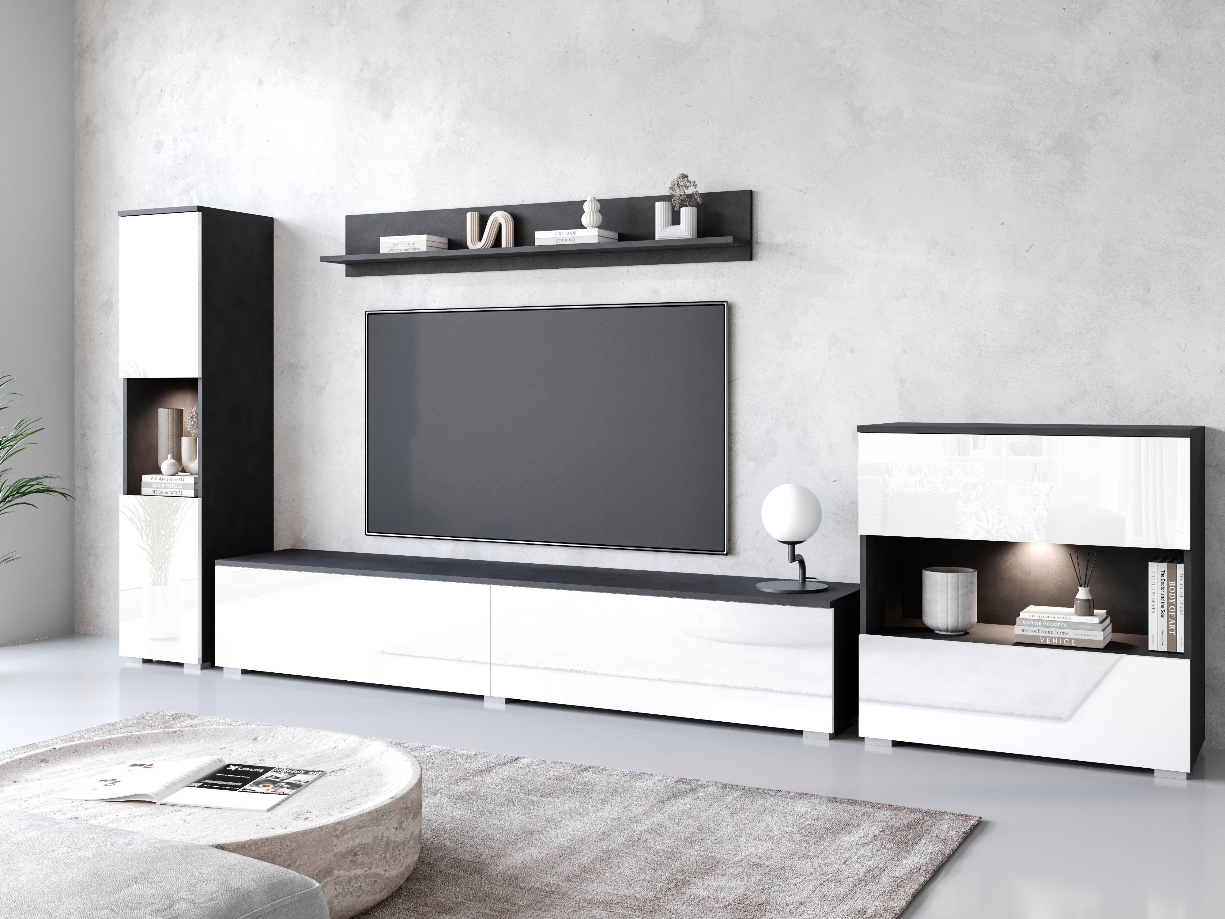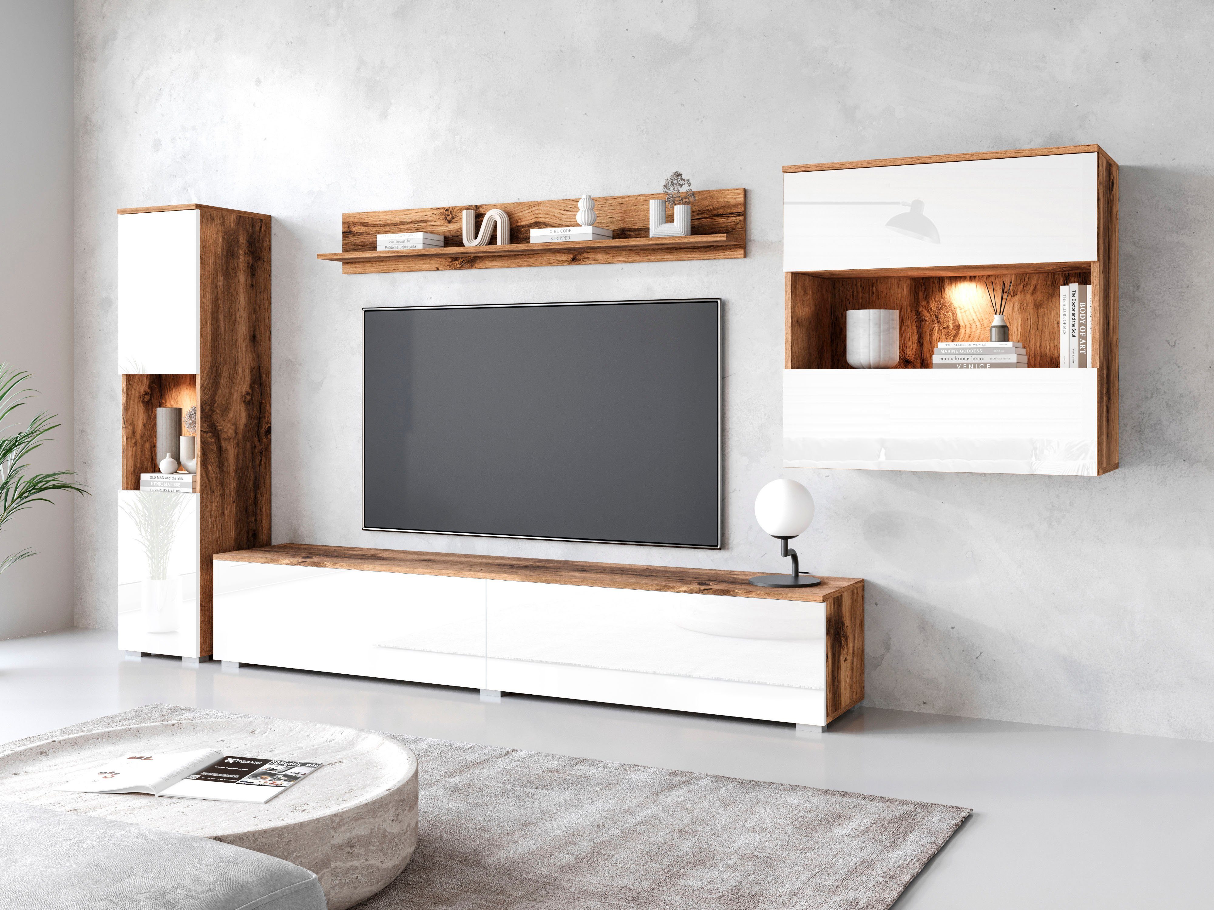 Set beinhaltet | 1 Stauraumschrank, 1 Lowboard, 1 Wandregal, 1 Hängeschrank |
