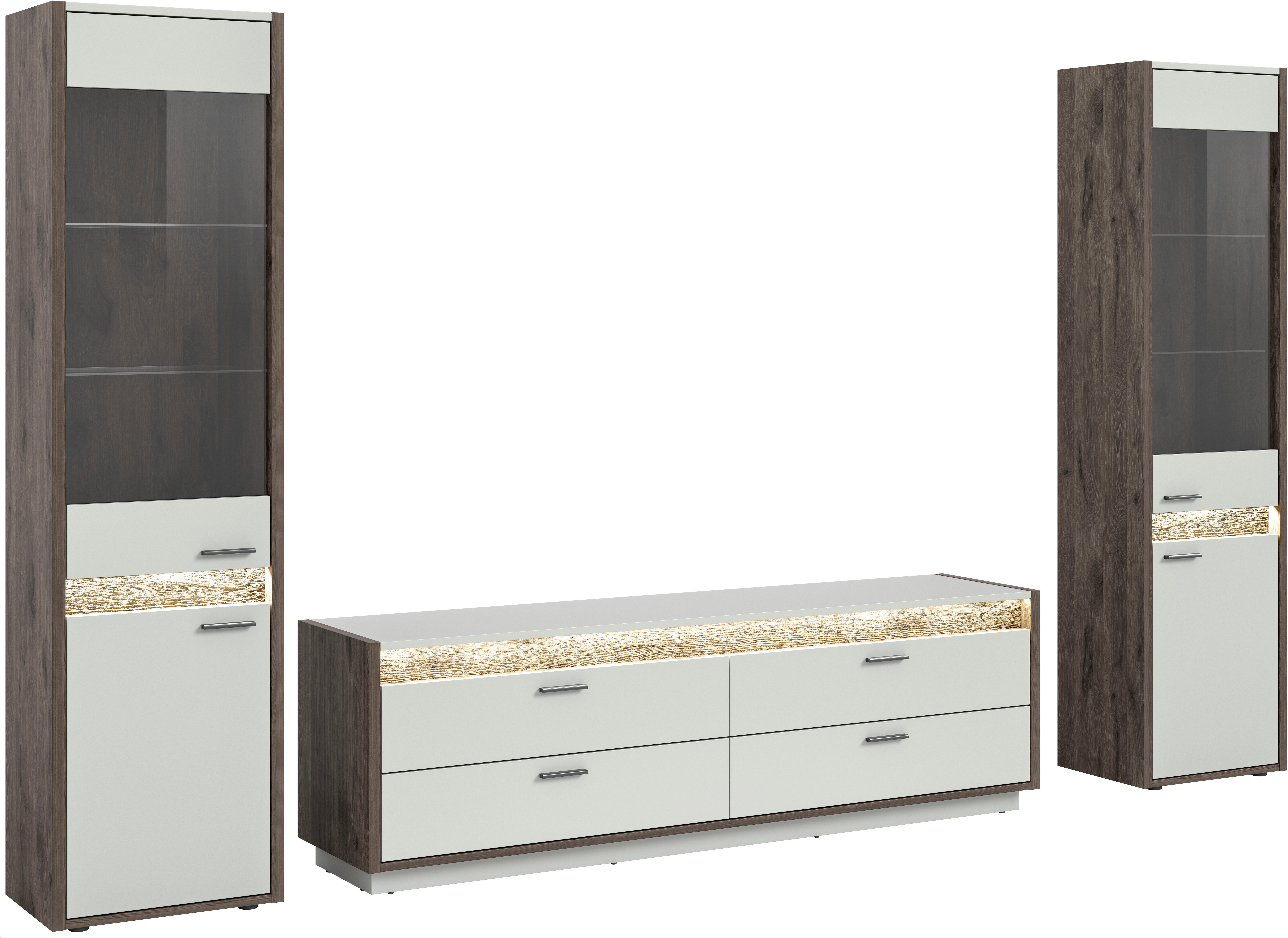 Set beinhaltet | 2x Vitrine, 1x Lowboard |
