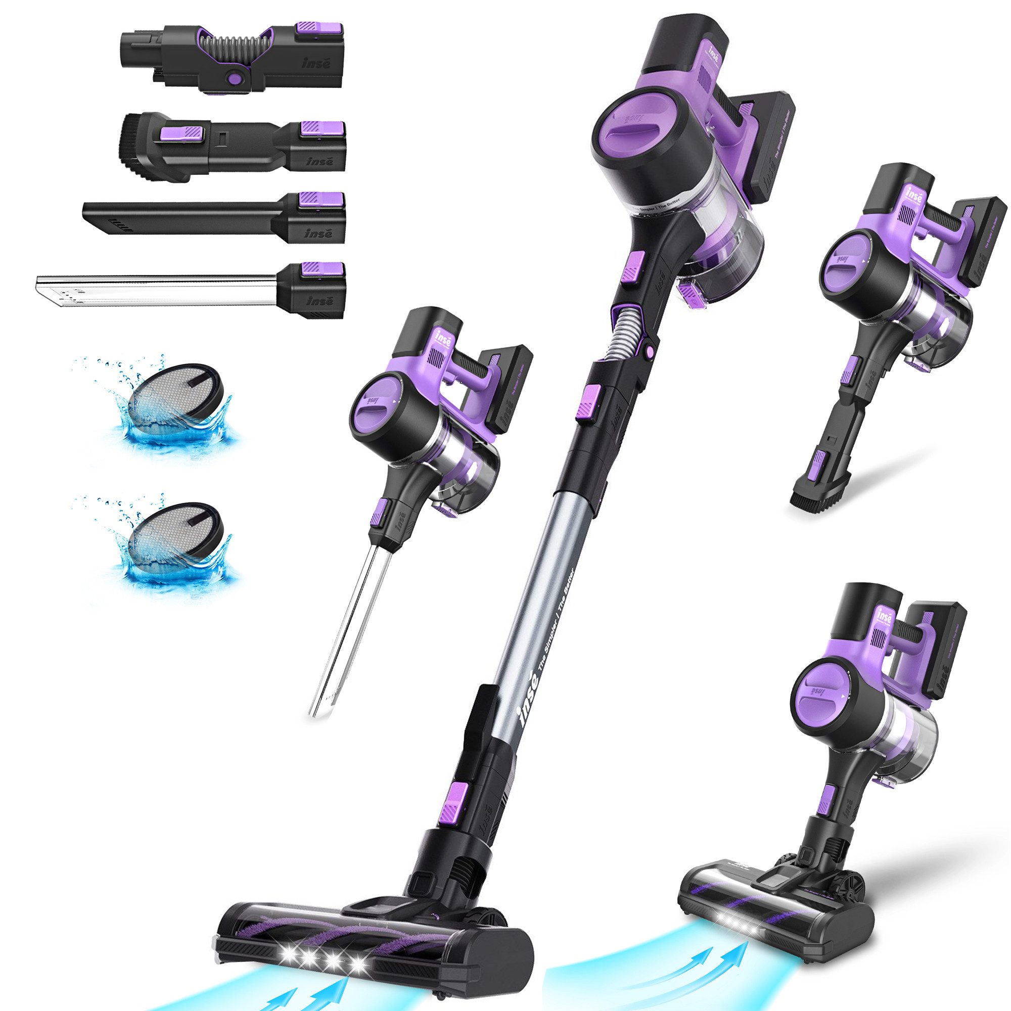 Eigenschaften | 4 LED-Leuchten V-förmiges Walzendesign 6-in-1-Kombinationen Handstaubsauger/stielstaubsauger |