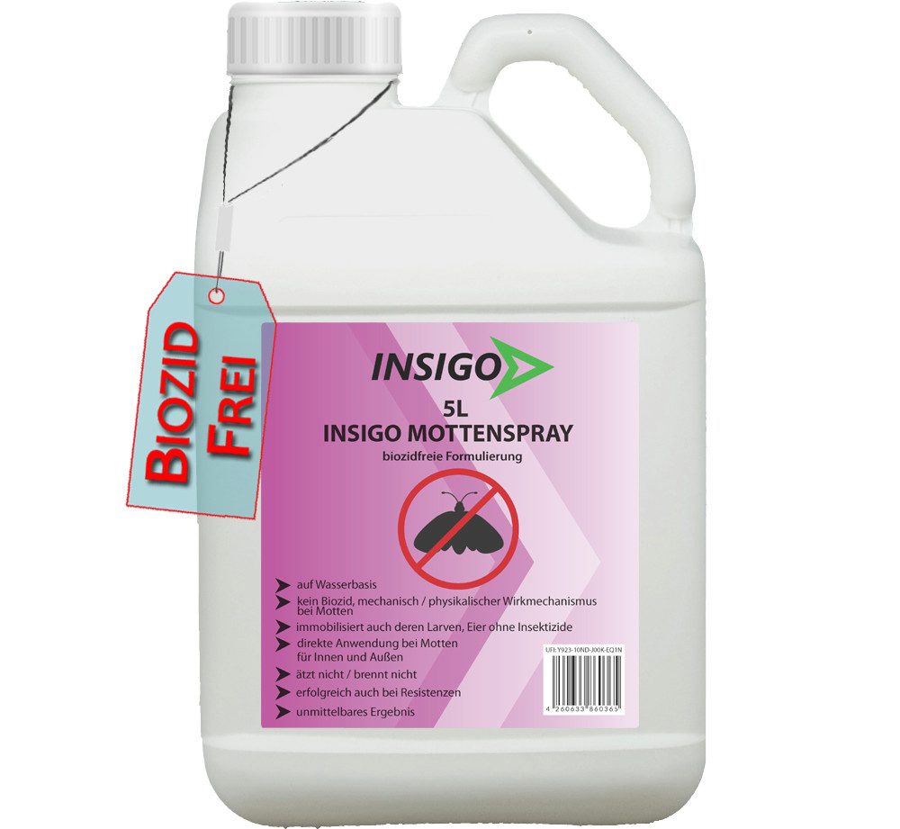 Eigenschaften | anwendungsfertig hochwirksam gegen Motten bekämpft auch Motten Eier Wasserbasis geruchsarm hinterlässt keine Flecken biozidfreie Formel |